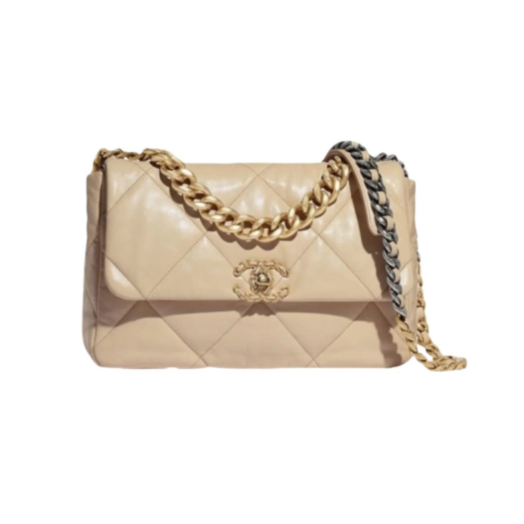 Borsa Chanel 19 in pelle beige chiaro 26 cm
