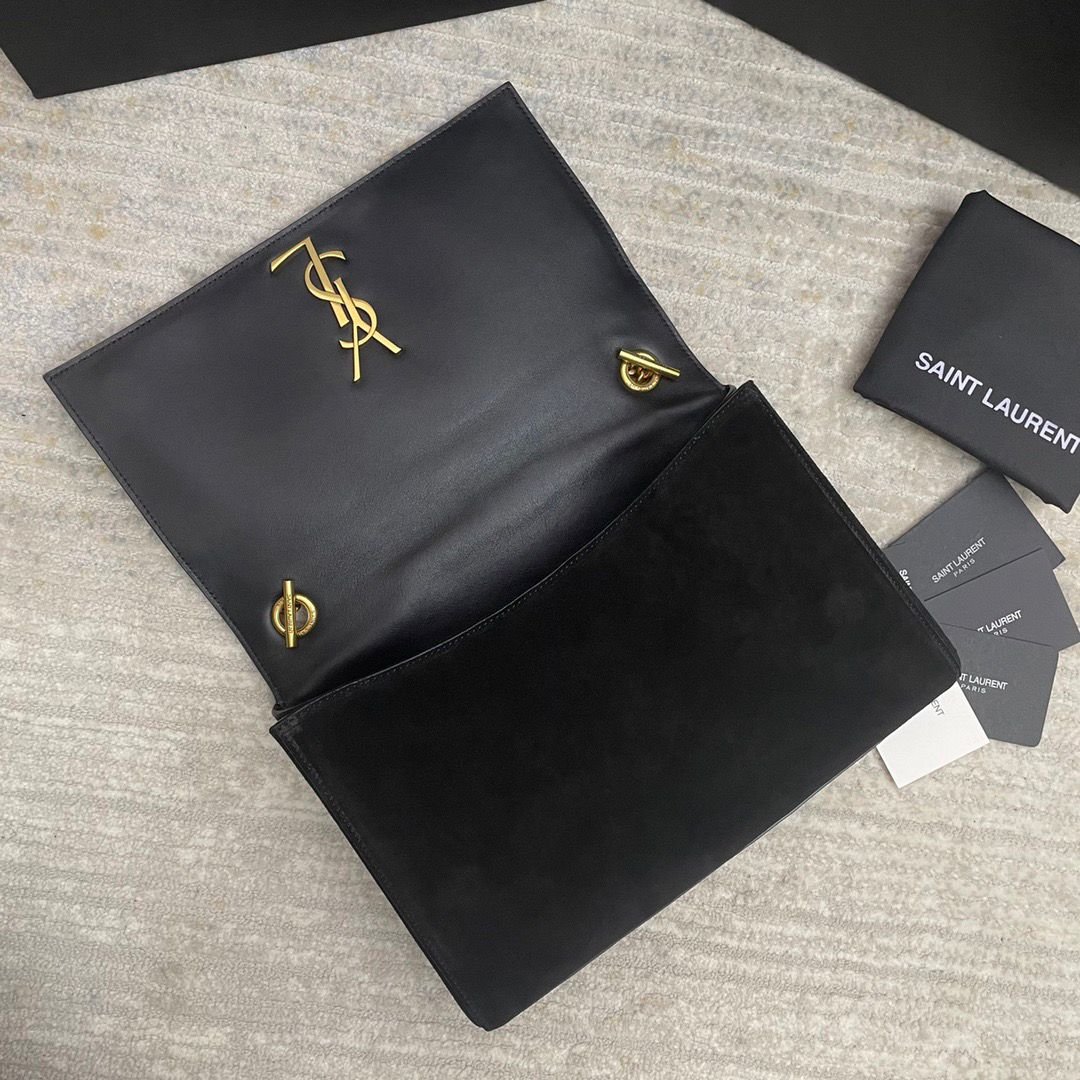 Borsa Saint Laurent Kate reversibile in suede e pelle nera 28,5 cm