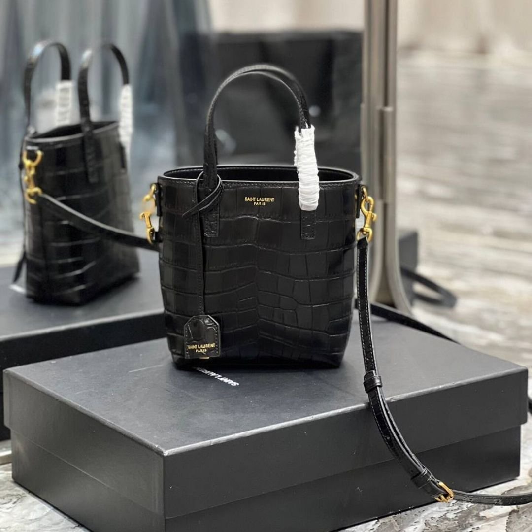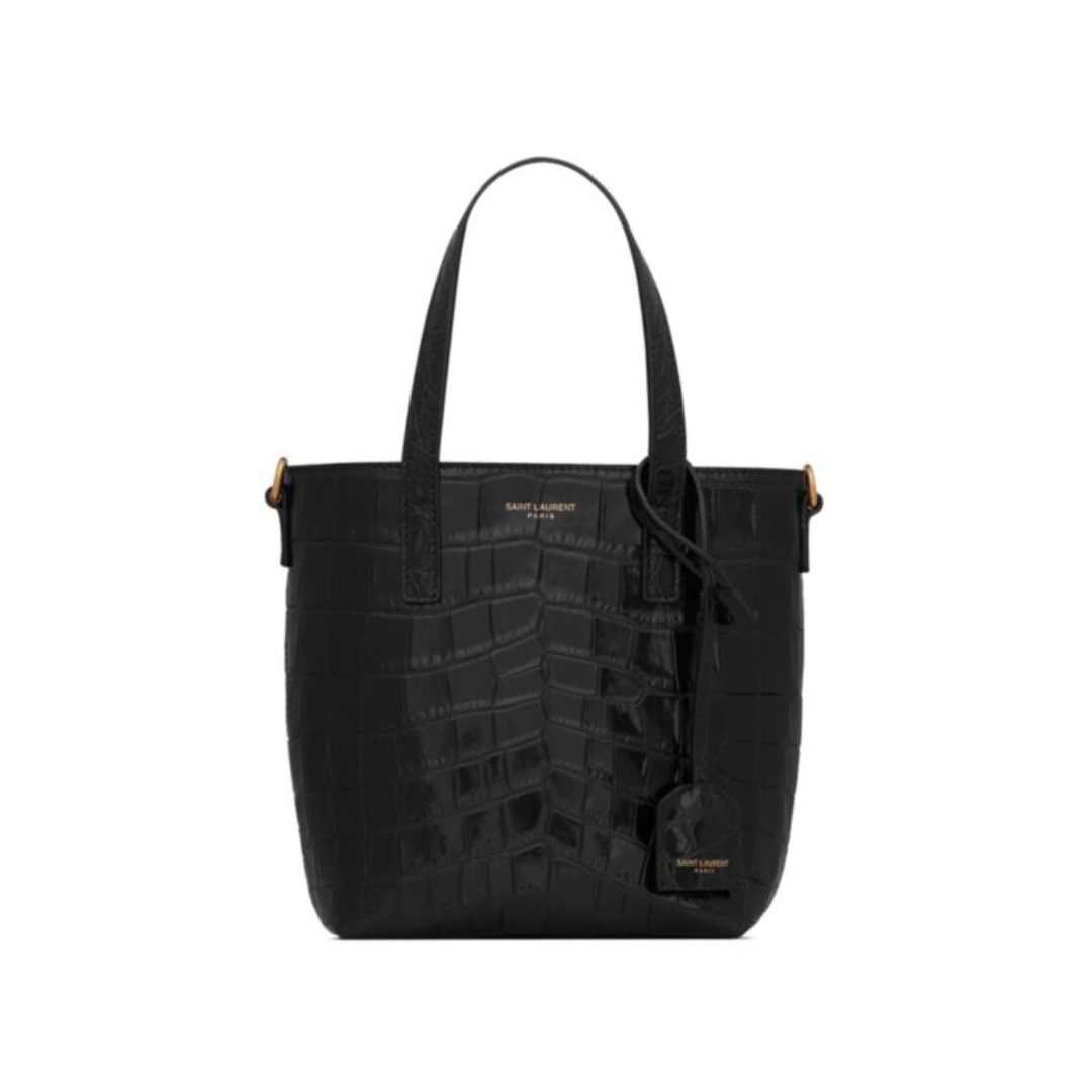 Borsa Saint Laurent Paris in pelle nera effetto coccodrillo 18 cm