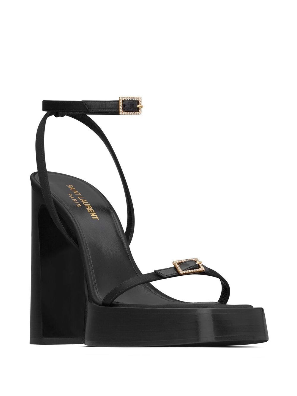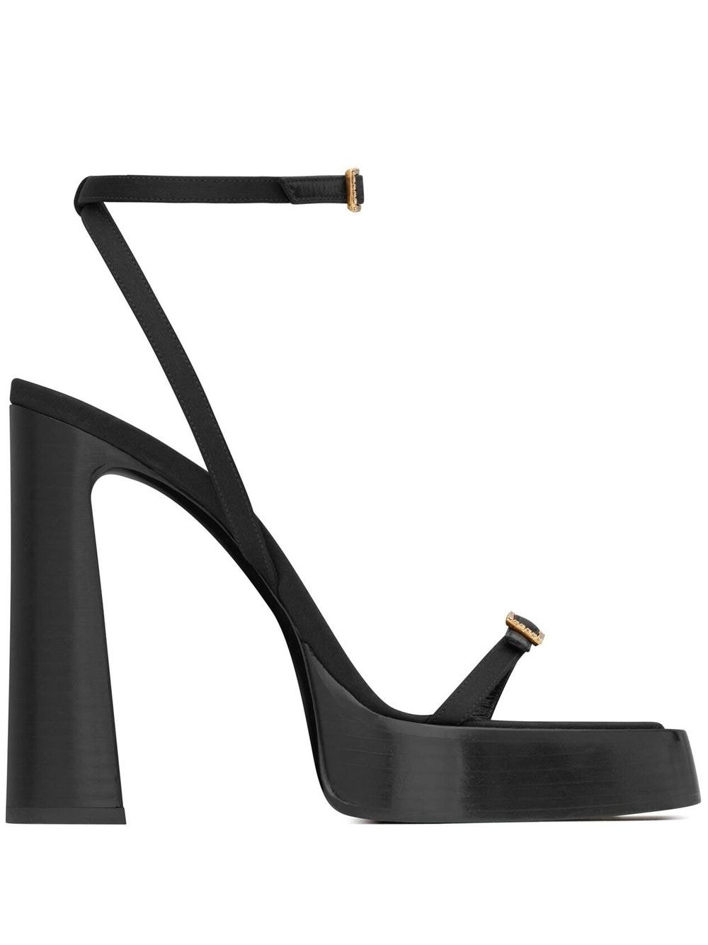 Sandali Saint Laurent Platz in raso nero 10,5 cm