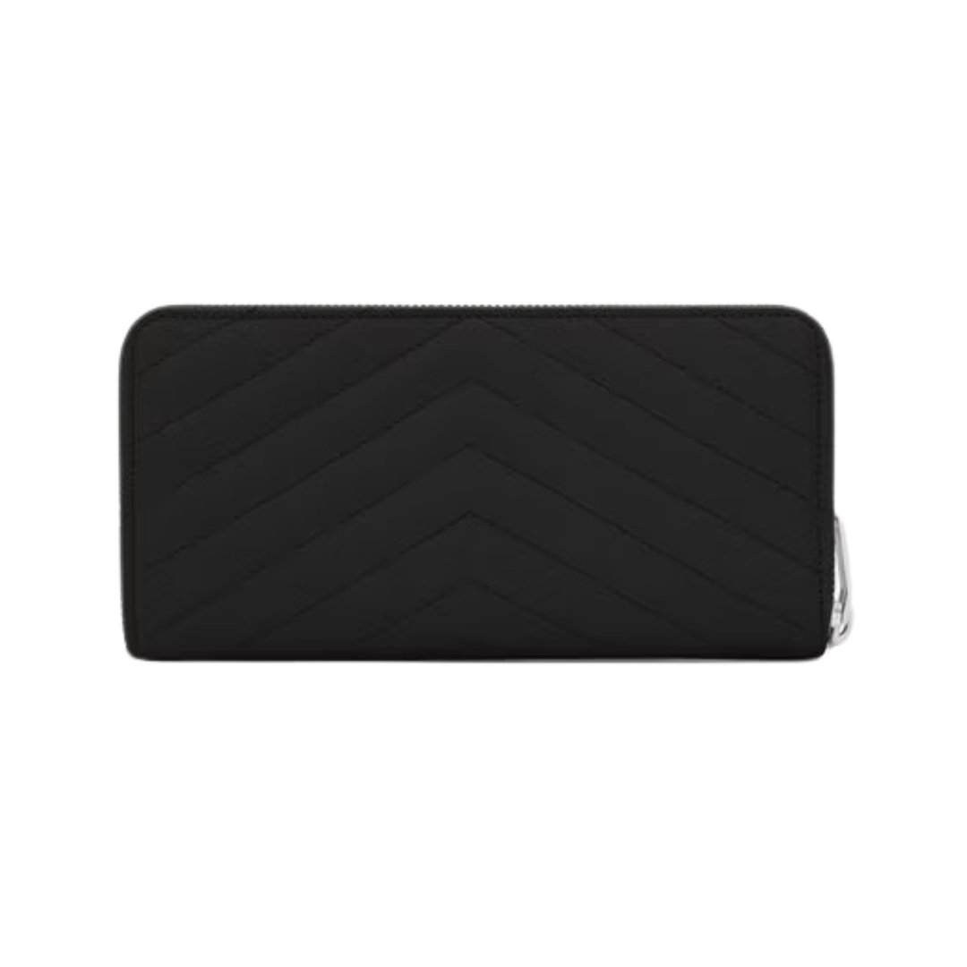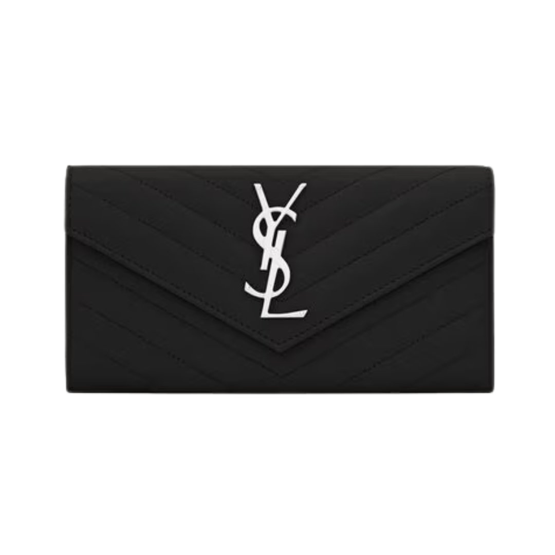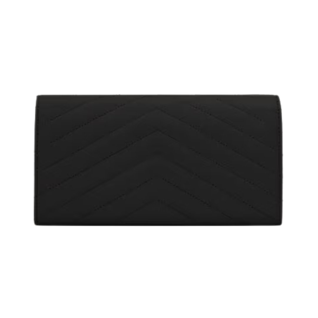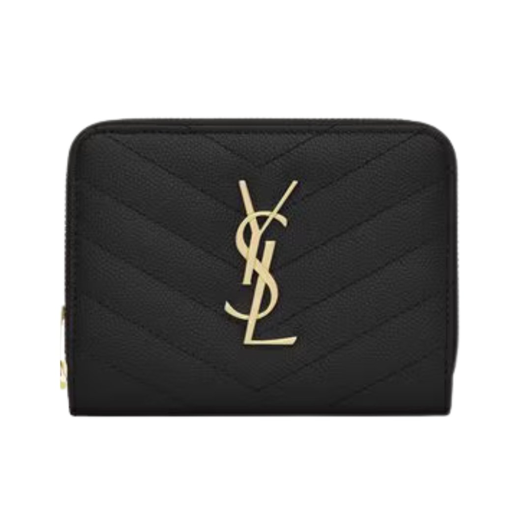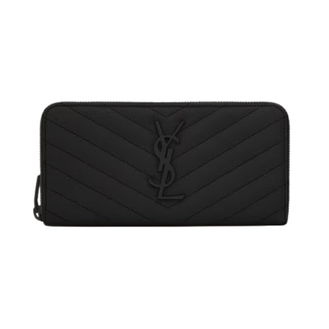 Dettagli:● Materiale: Pelle grain de poudre matelassé● Colore: Nero● Chiusura: Zip perimetrale● Logo: Monogram YSL dorato● Interno: Scomparti per carte,