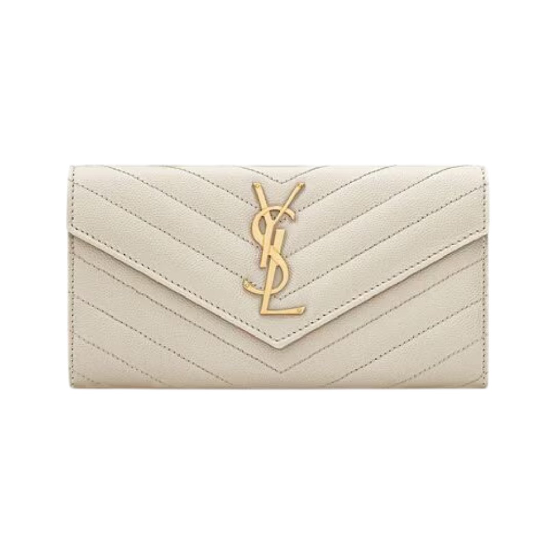 Dettagli:● Materiale: Pelle grain de poudre● Colore: Beige sabbia● Chiusura: Patta con bottone● Logo: YSL dorato● Interno: Organizzato con slot
