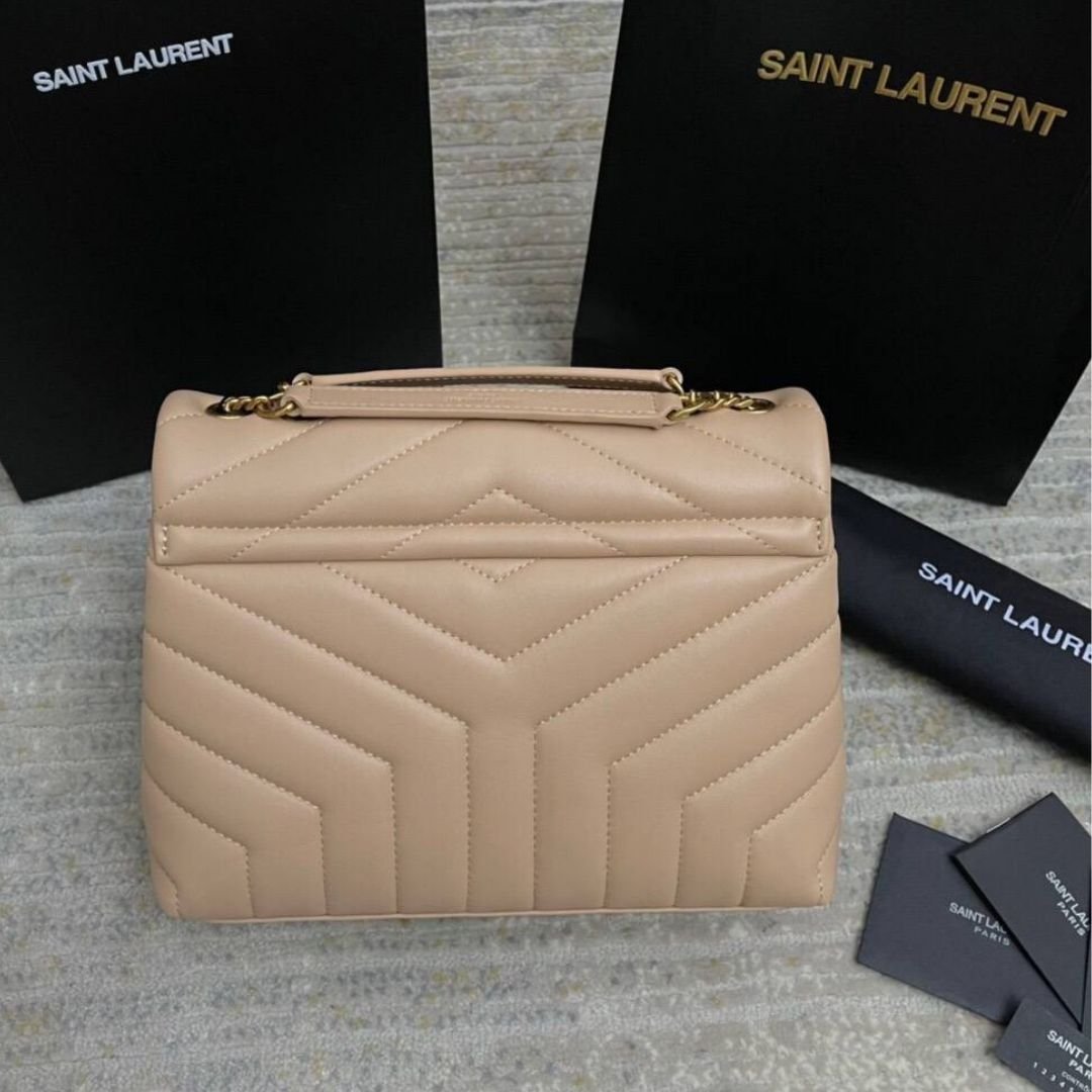 Borsa Saint Laurent LouLou in pelle beige 32 cm
