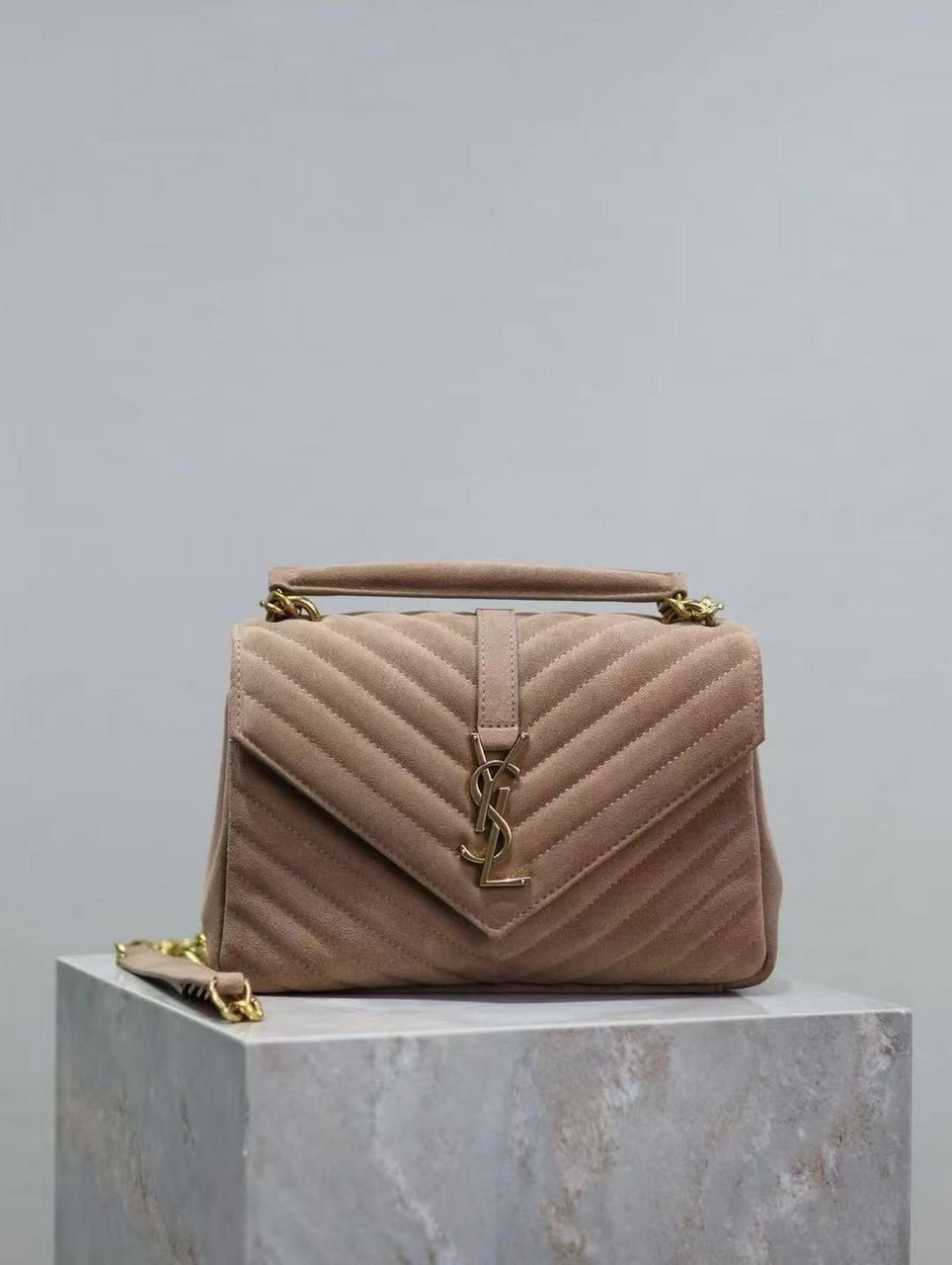 Borsa Saint Laurent in camoscio caramello con fibbia dorata 24 cm