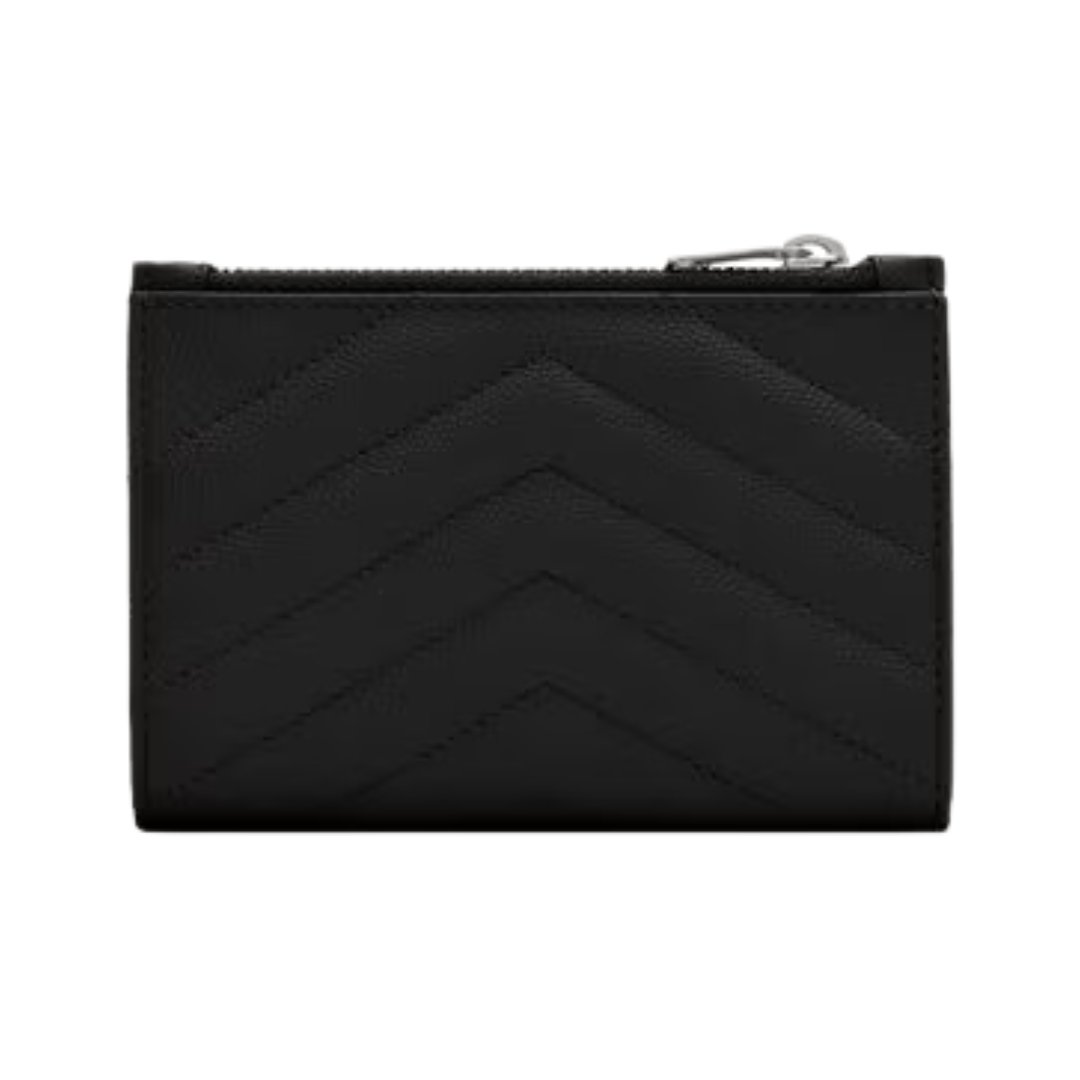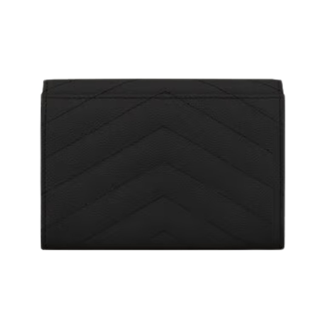 Portafoglio Saint Laurent Cassandre Matelassé Tri-Fold compatto in pelle Grain de Poudre nera 12.5 cm