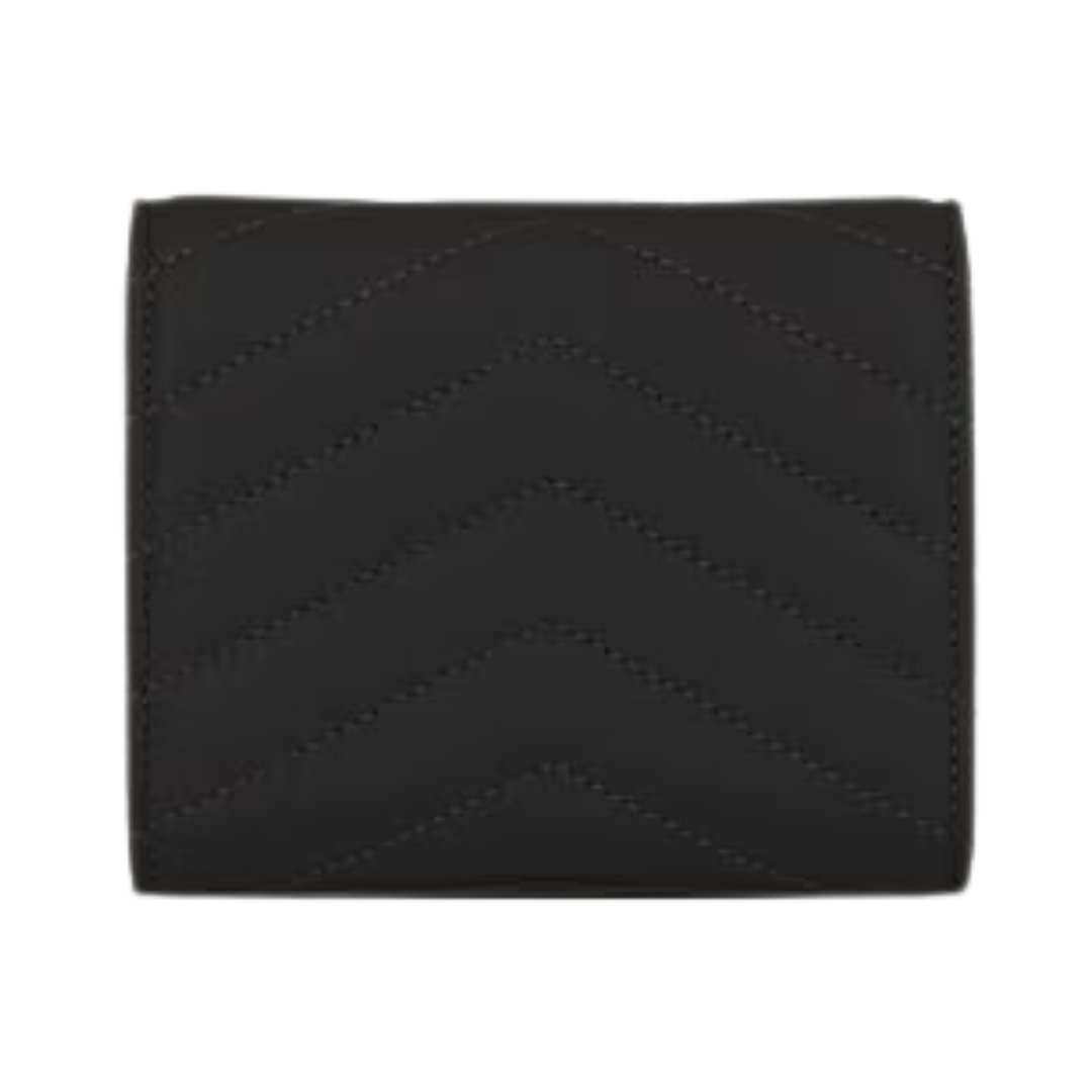 Portafoglio Saint Laurent Cassandre Matelassé Tri-Fold compatto in pelle Grain de Poudre nera 10.5 cm