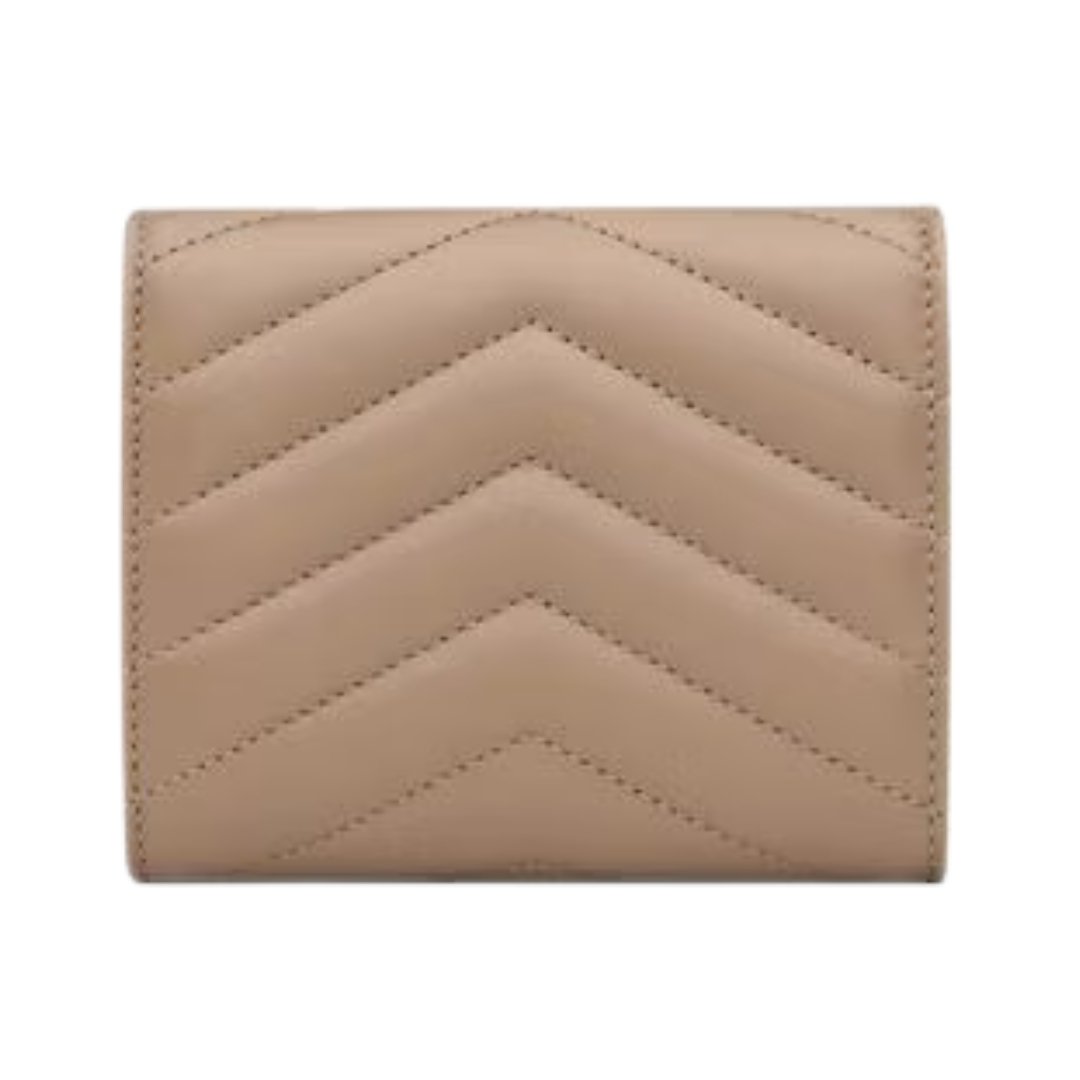 Portafoglio Saint Laurent Cassandre Matelassé Tri-Fold compatto in agnello cipria 12.5 cm