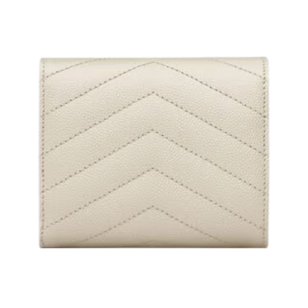 Portafoglio Saint Laurent Cassandre Matelassé Tri-Fold compatto in agnello avorio 12.5 cm