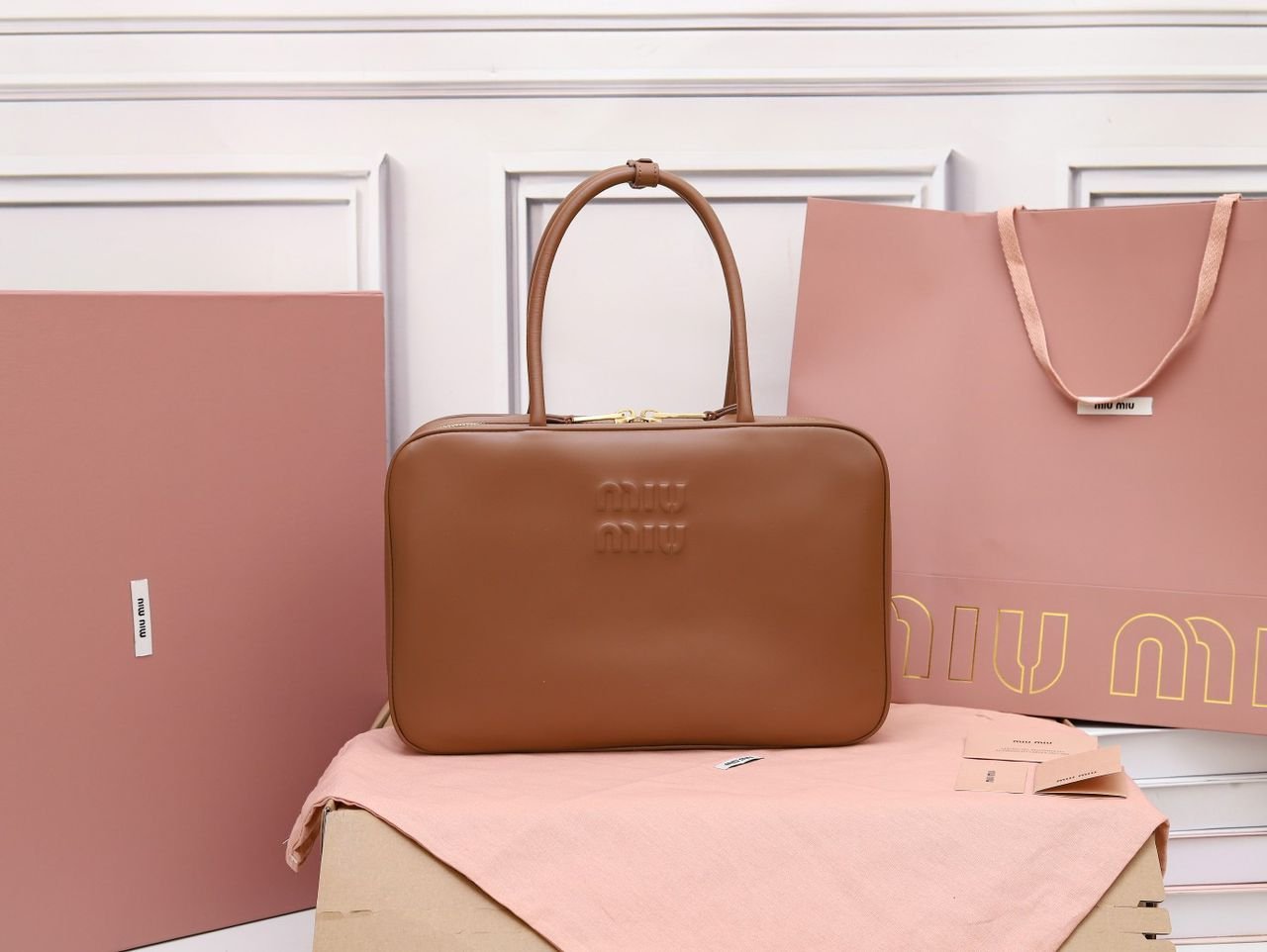 Miu Miu Leather Top-Handle Box Bag caramello 34 cm