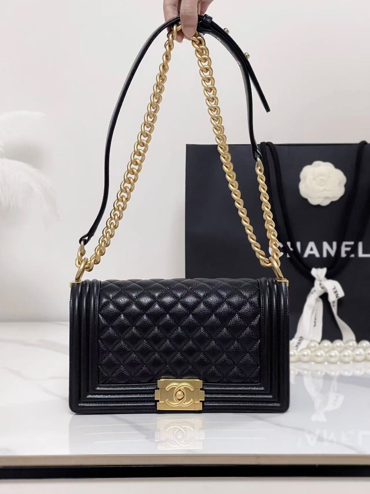 Mini Borsa Chanel Boy in pelle nera con finiture dorate 20 cm