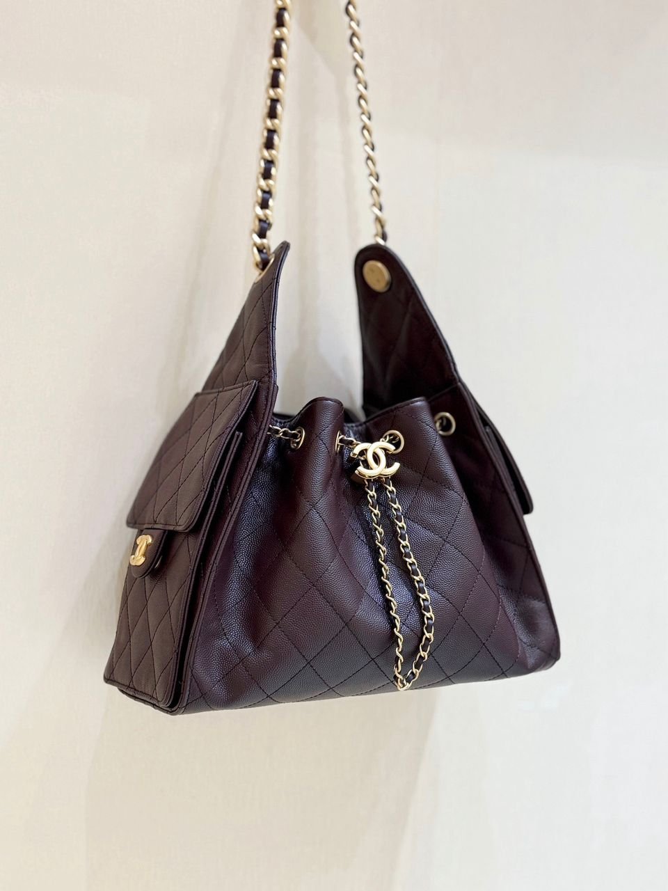 Borsa Chanel 25 Drawstring Bucket in pelle nera