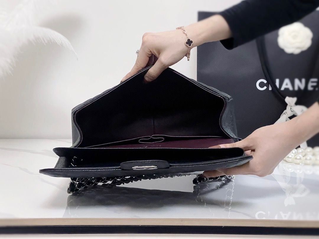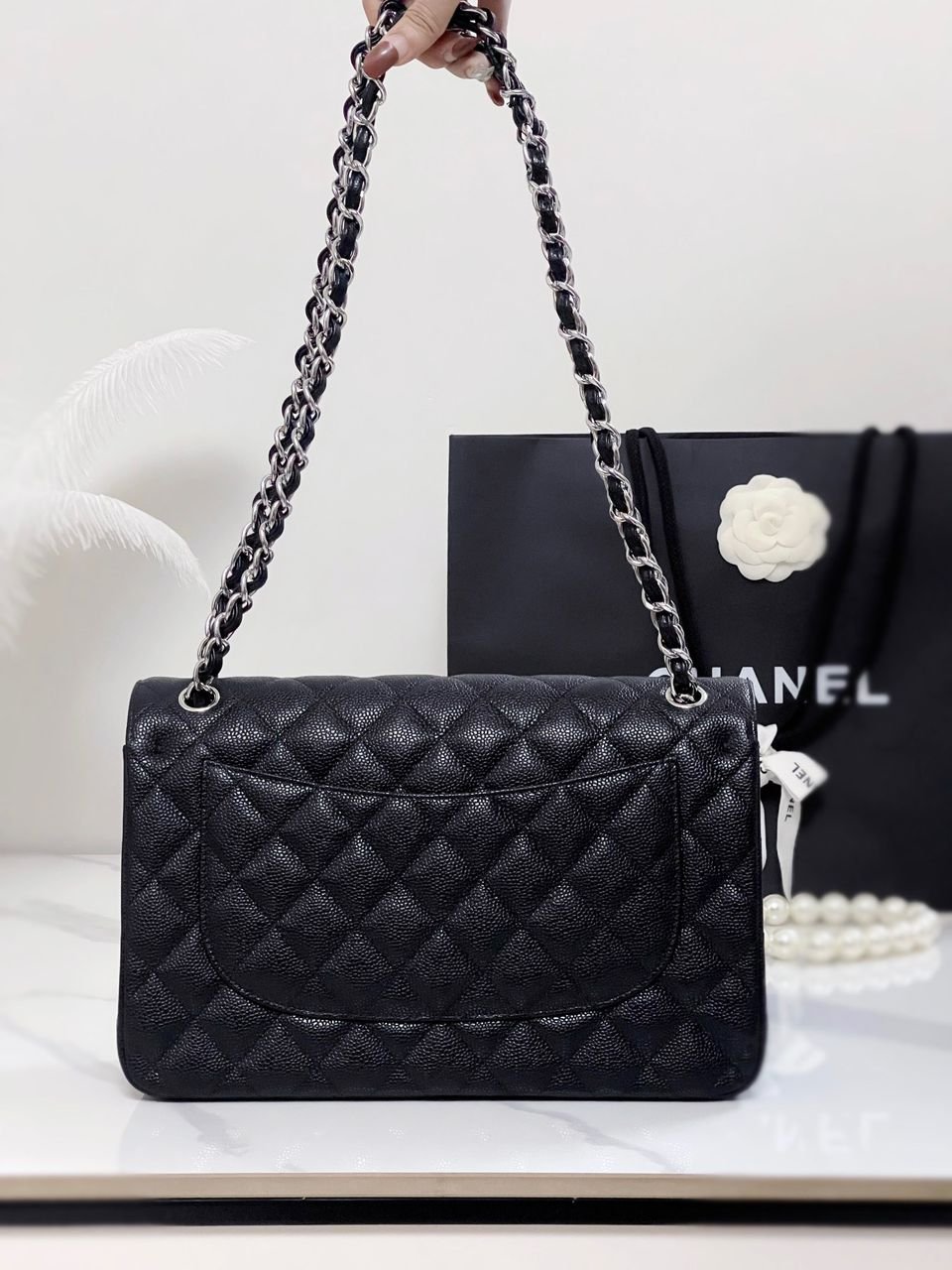 Borsa Chanel 11.12 in caviar nero con metalleria argentata 30 cm