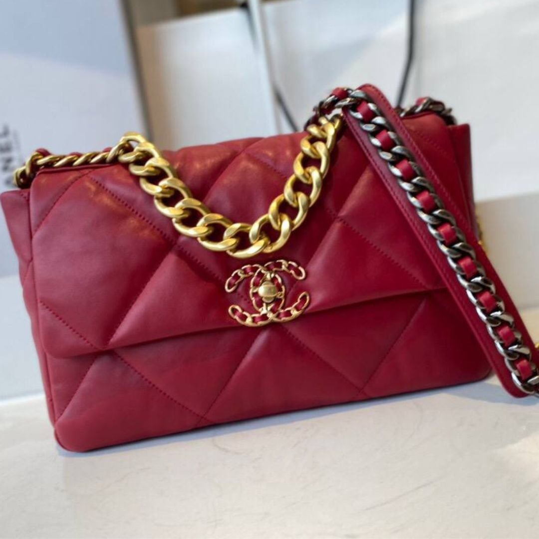 Borsa Chanel 19 rosso ciliegia 26 cm