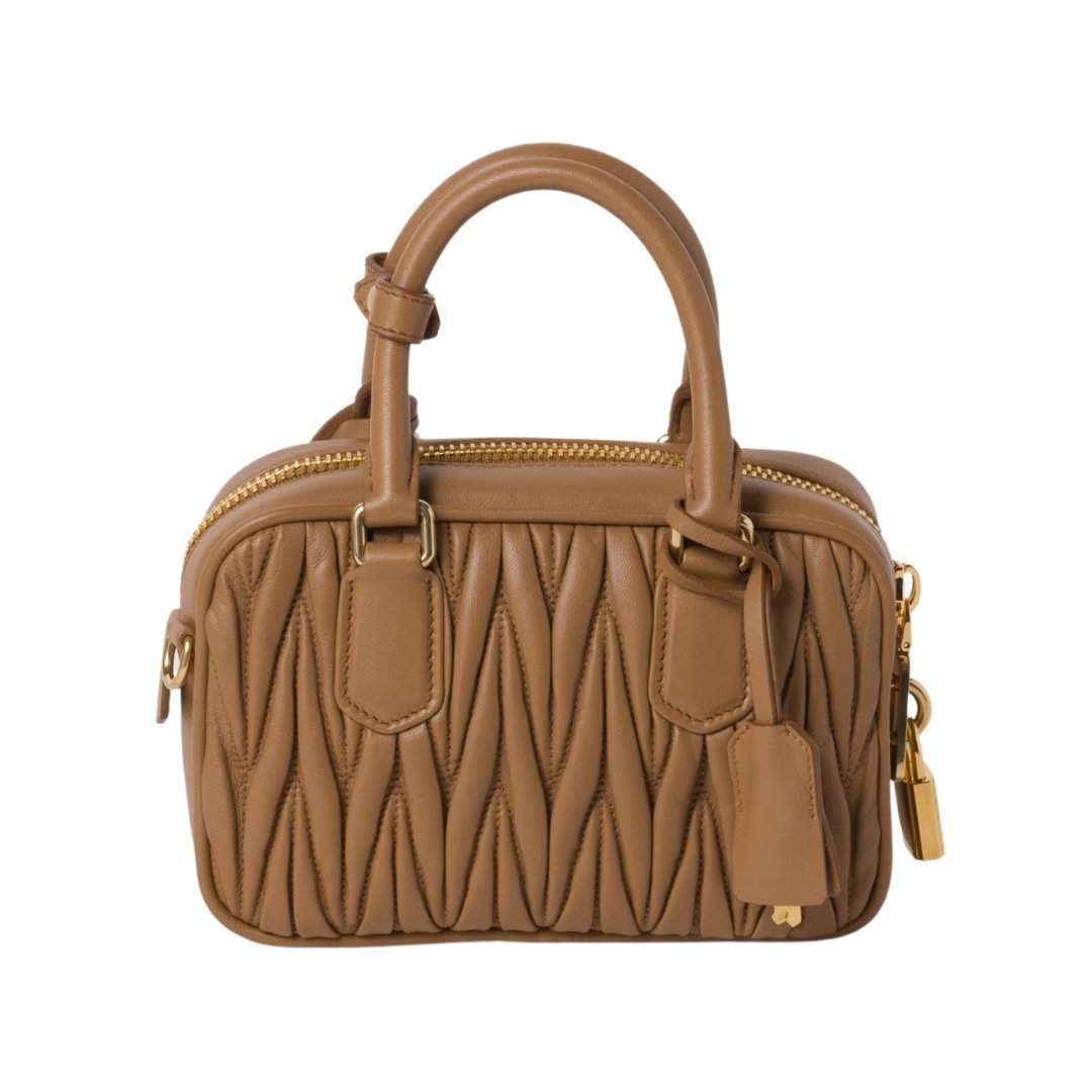 Miu Miu Borsa Arcadie Matelassé in nappa caramello 13 cm