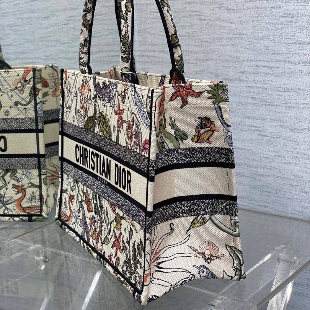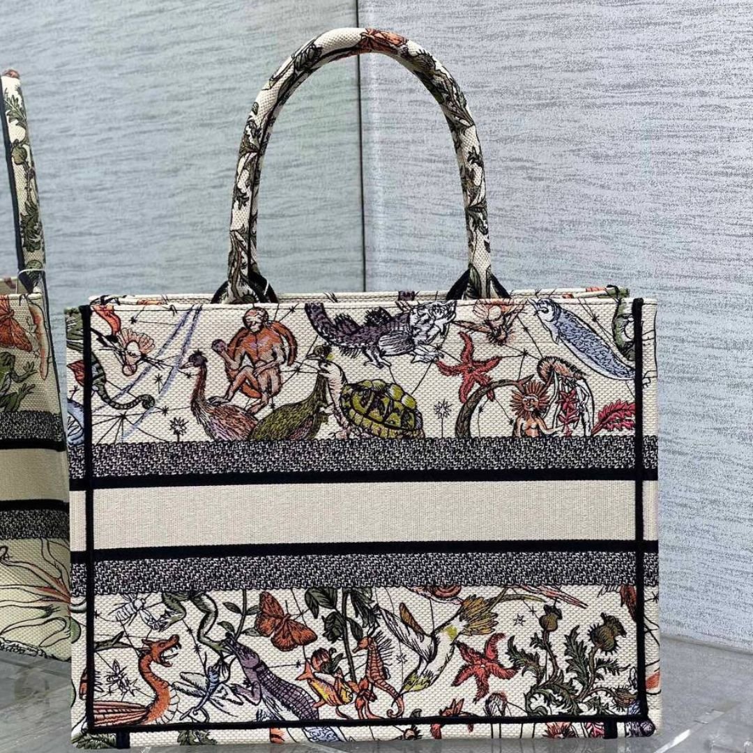 Borsa Dior Book Tote media Toile de Jouy Sauvage multicolore 36 cm