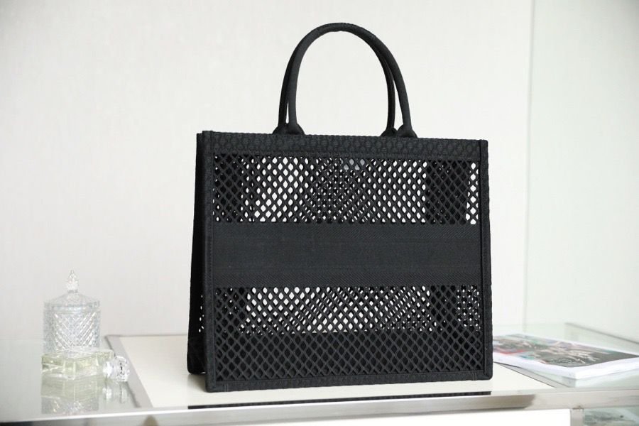 Borsa Dior Book Tote grande in maglia traforata nera 42 cm