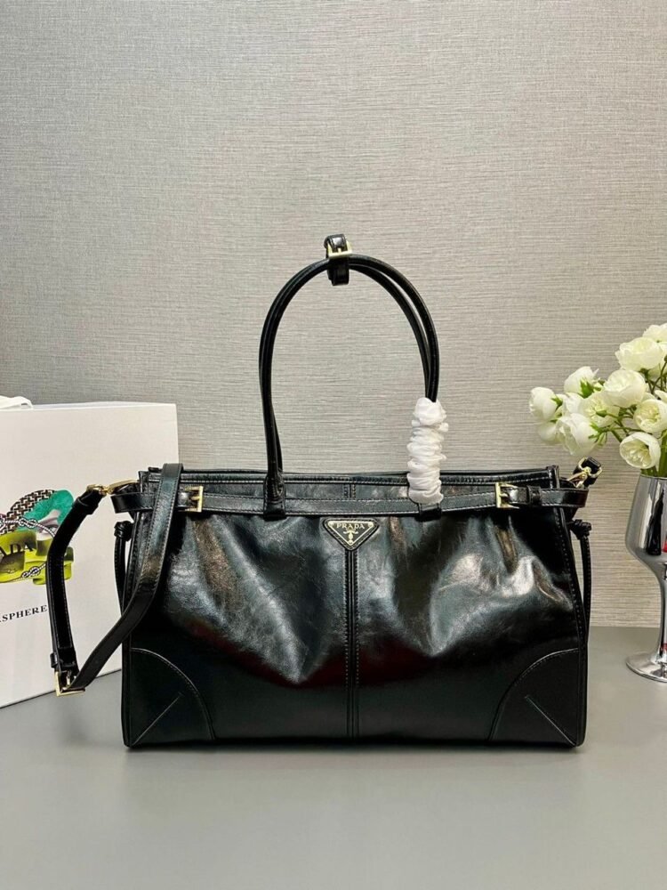 ● Logo: triangolo Prada smaltato nero con profili dorati