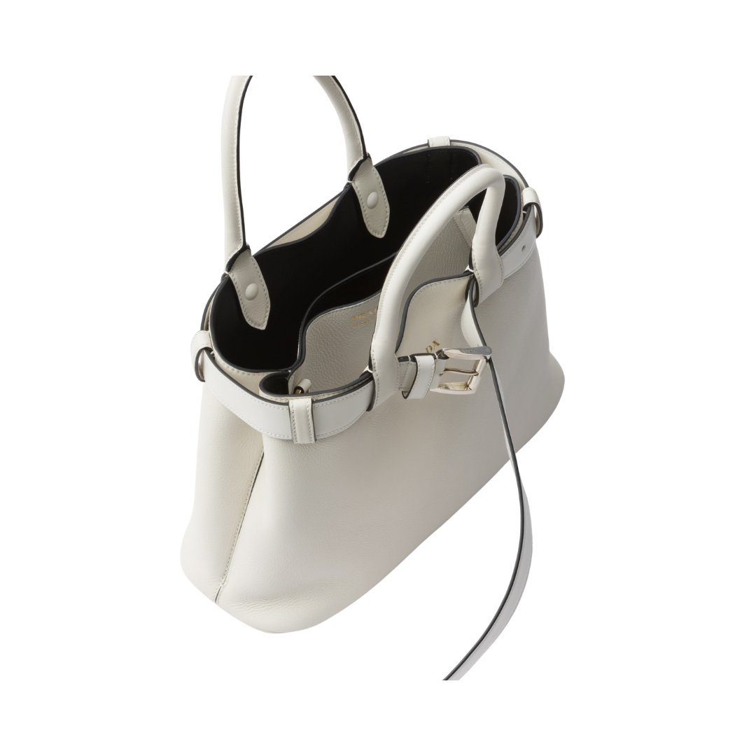 Borsa Prada Buckle piccola in pelle bianca con cintura 32 cm
