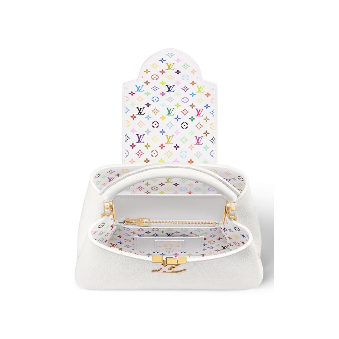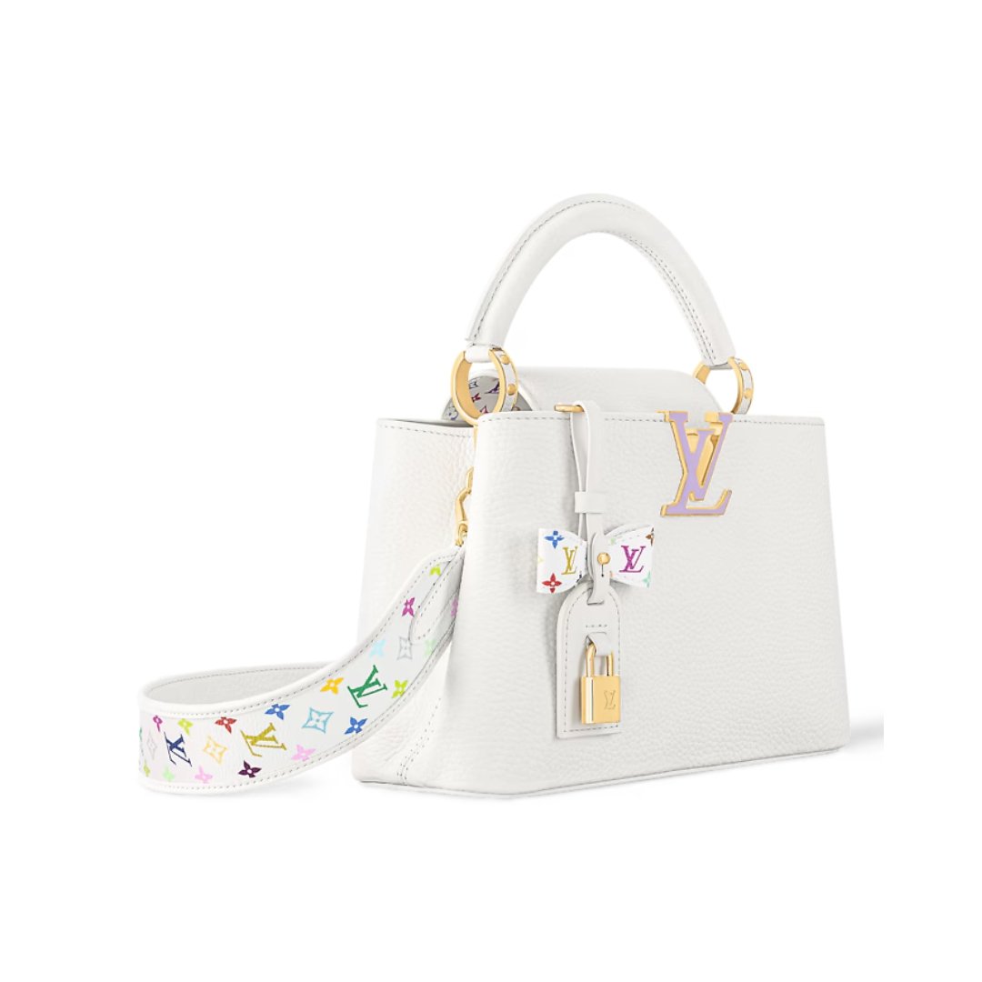 Borsa Louis Vuitton Capucines BB bianca con dettagli Monogram multicolor 27 cm