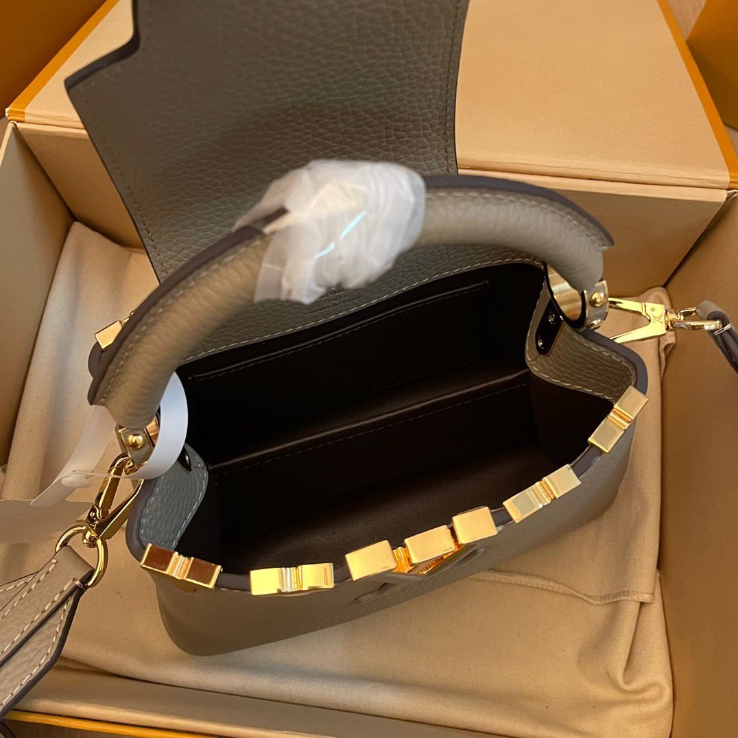 ● Logo: LV oversize frontale in metallo dorato smaltato tono su tono