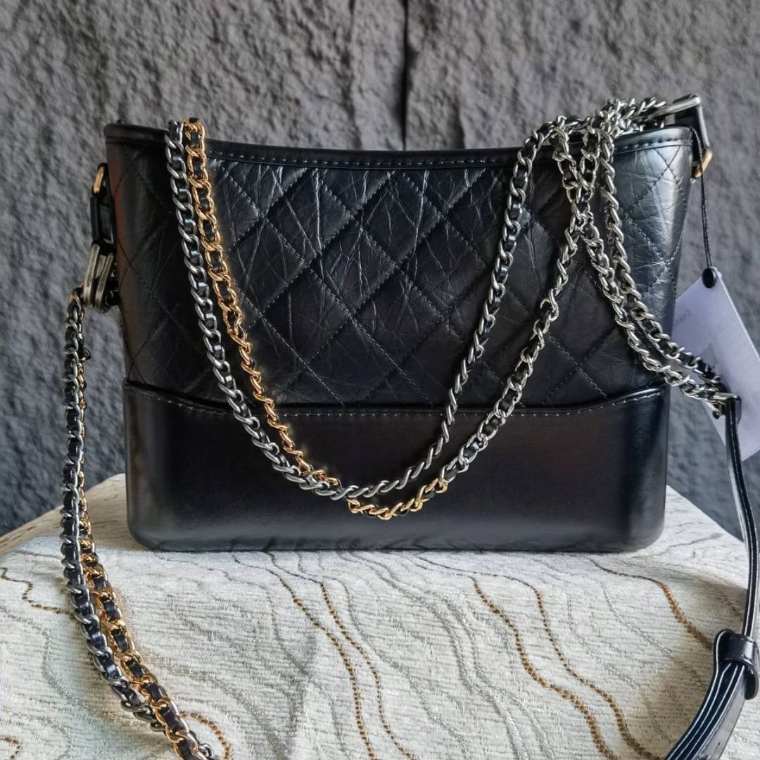 Borsa Chanel Gabrielle Hobo in pelle nera 28 cm