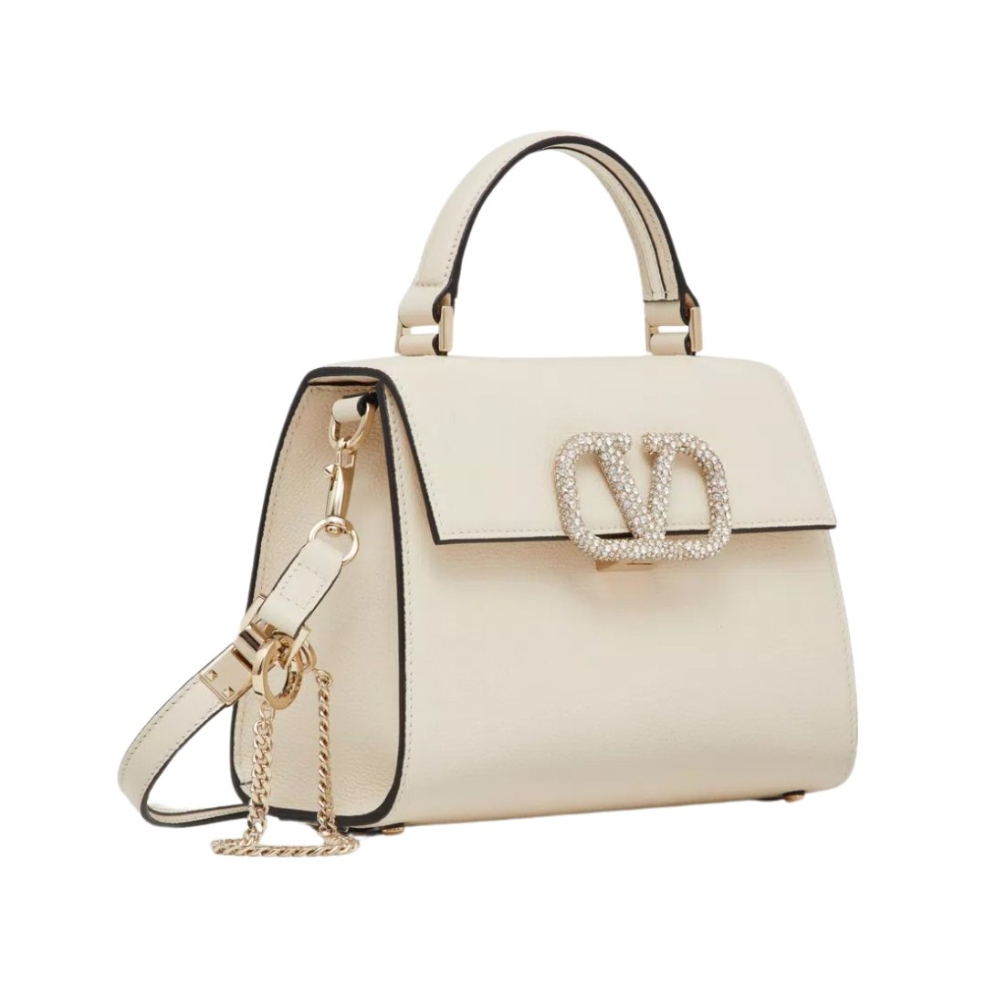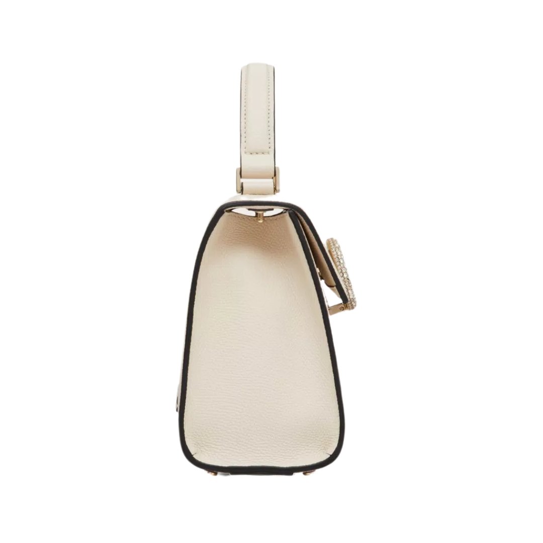 Borsa Valentino con logo gioiello in pelle avorio e cristalli 22 cm