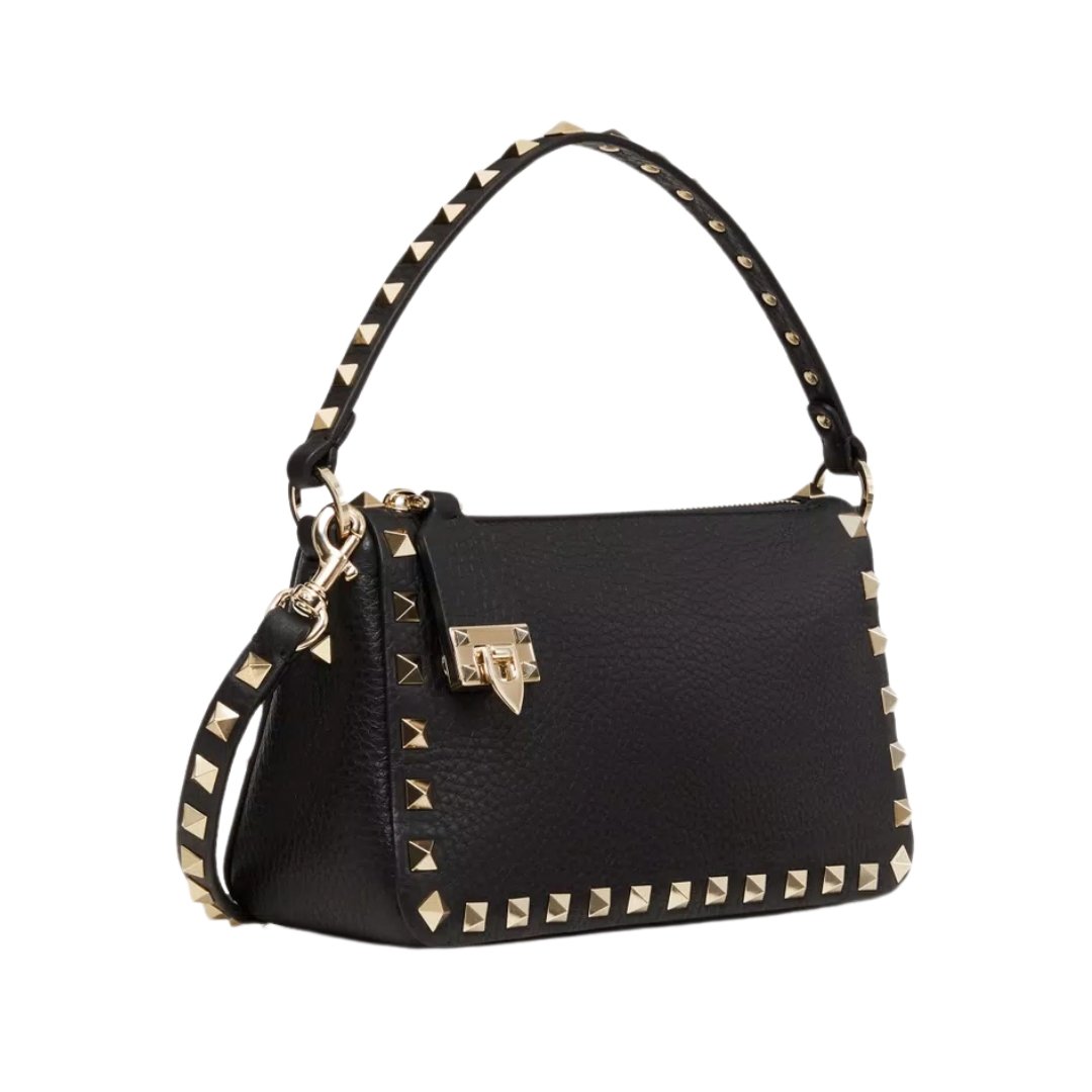 Borsa Valentino crossbody in pelle nera con borchie 19 cm