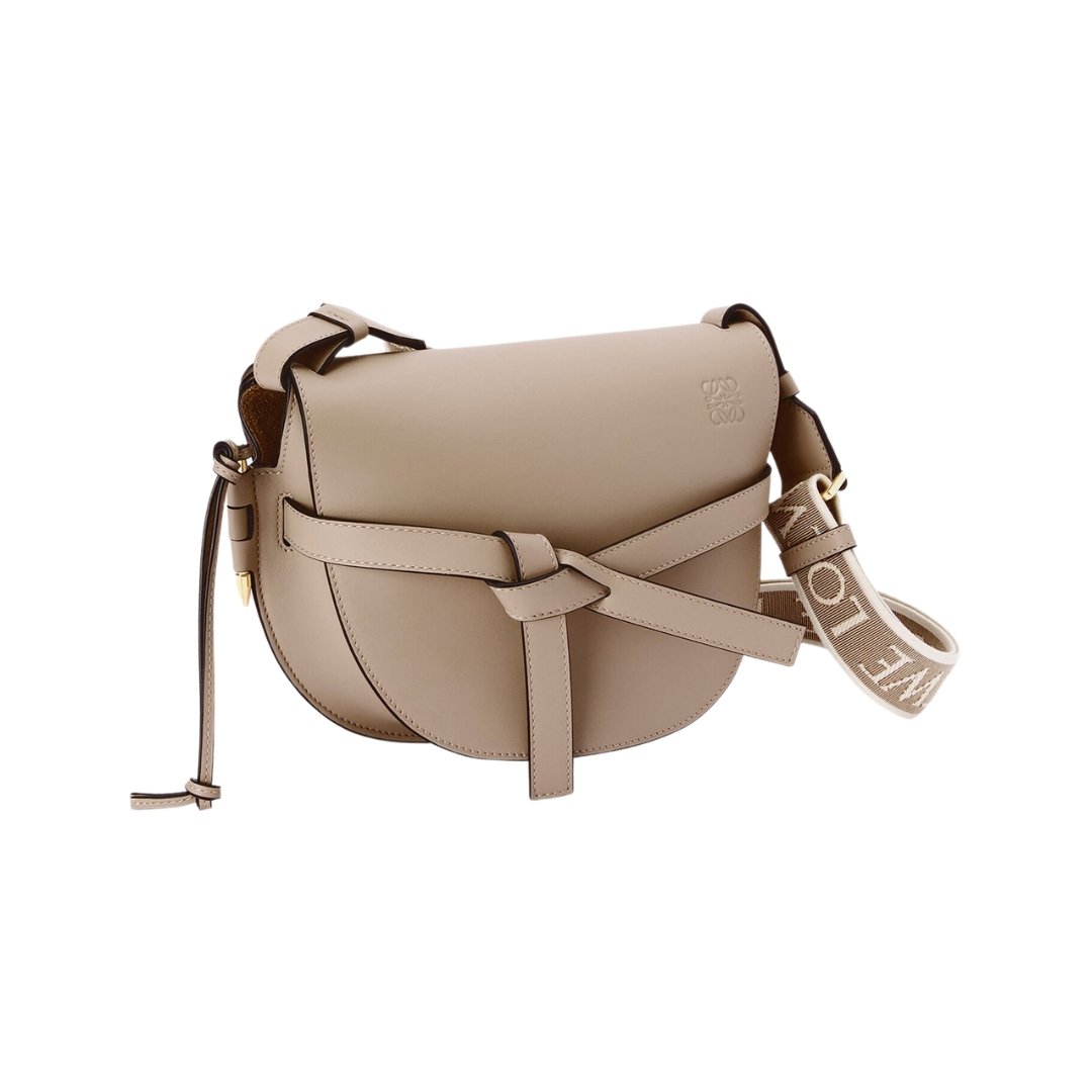 Borsa Loewe Gate Dual Mini in pelle color sabbia 19 cm