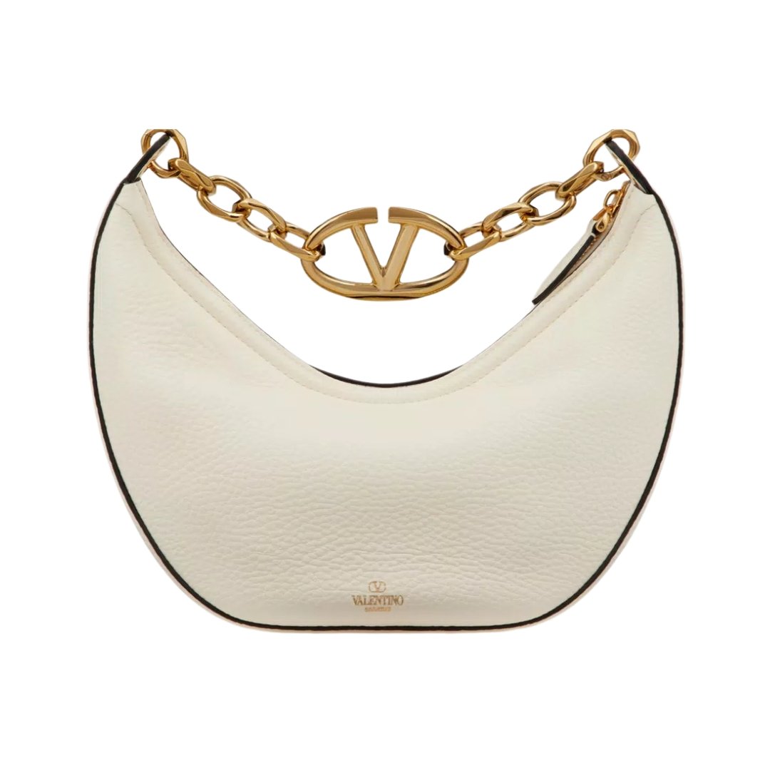 Borsa Valentino VLogo Moon Hobo piccola in pelle color avorio 29 cm