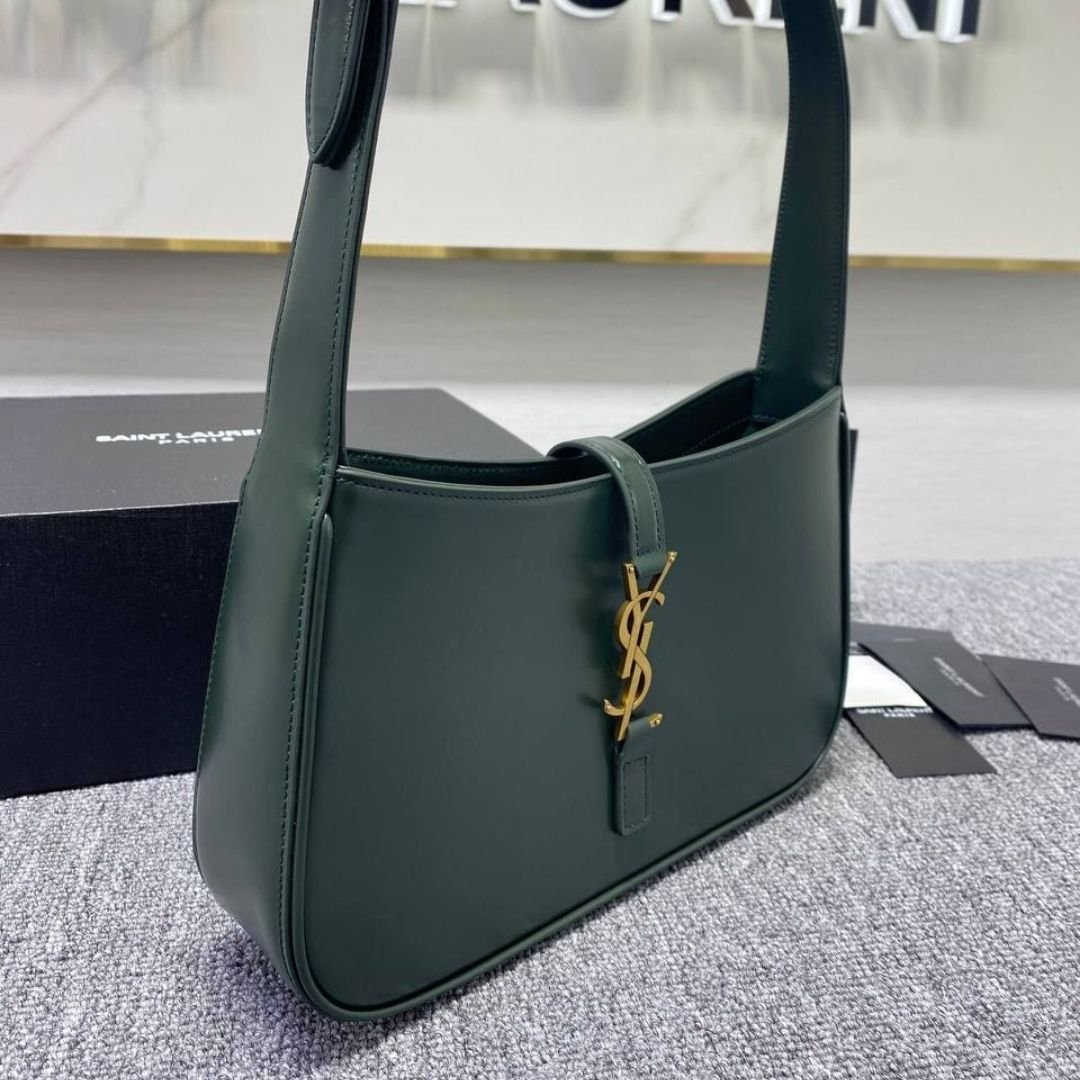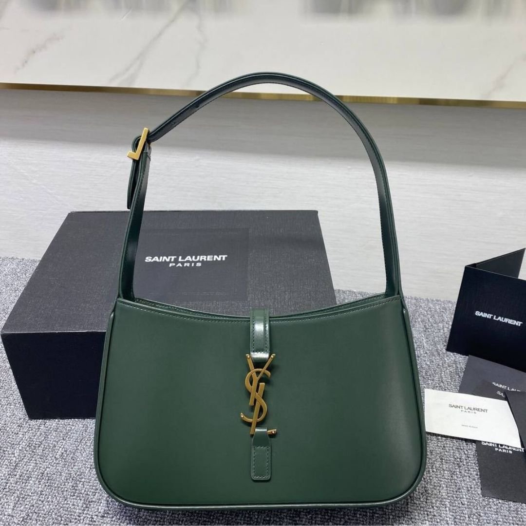 Borsa Saint Laurent Le 5 à 7 Hobo in pelle verde scuro 24,5 cm