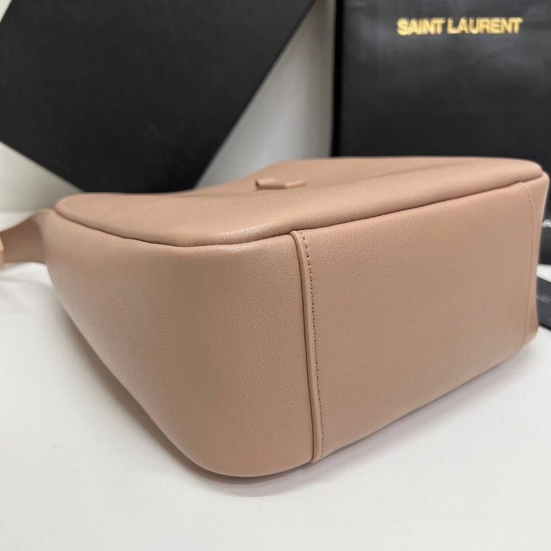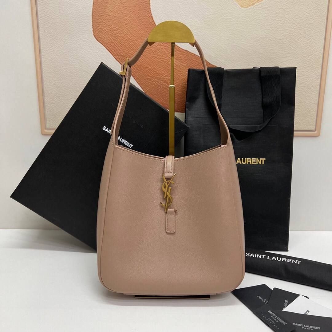 Borsa Saint Laurent Le 5 à 7 Hobo in pelle grigio tortora 30 cm