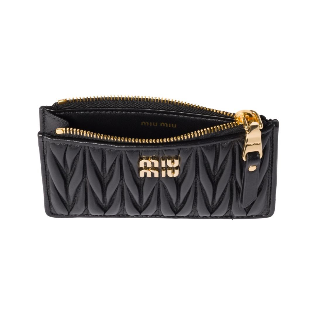 Clutch Miu Miu in pelle matelassé nera con logo dorato 8 cm