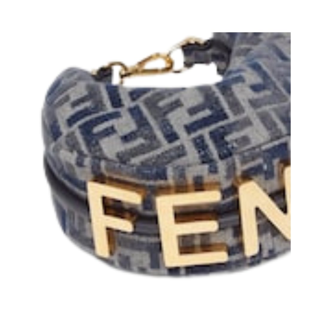 Borsa Fendi Mini Fendigraphy in chenille blu 13 cm