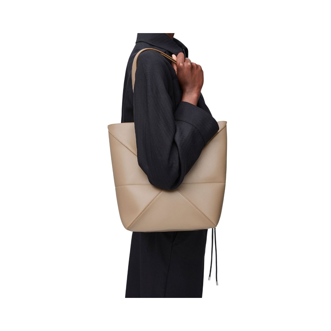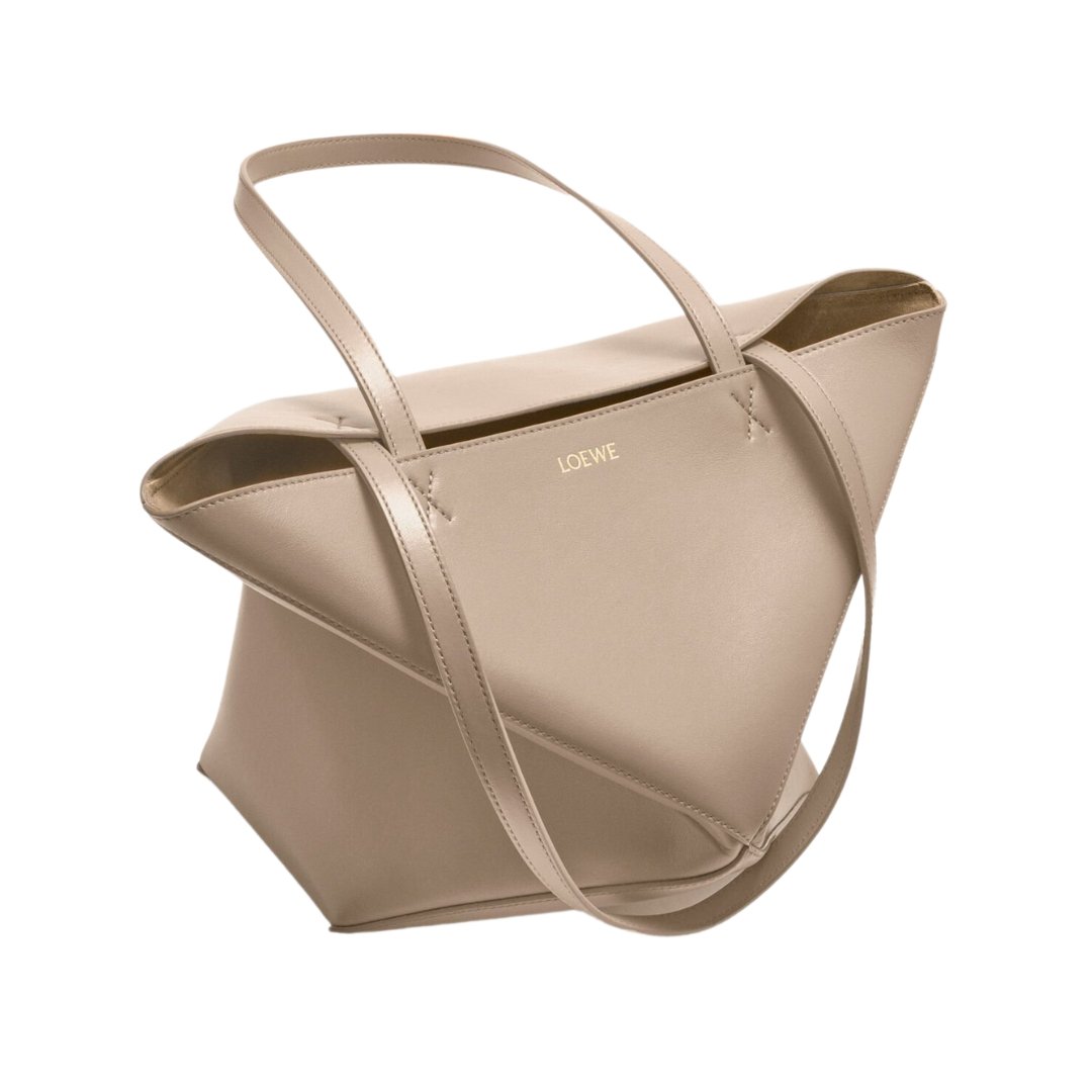 Borsa Puzzle Fold media in pelle lucida beige sabbia 31,5 cm
