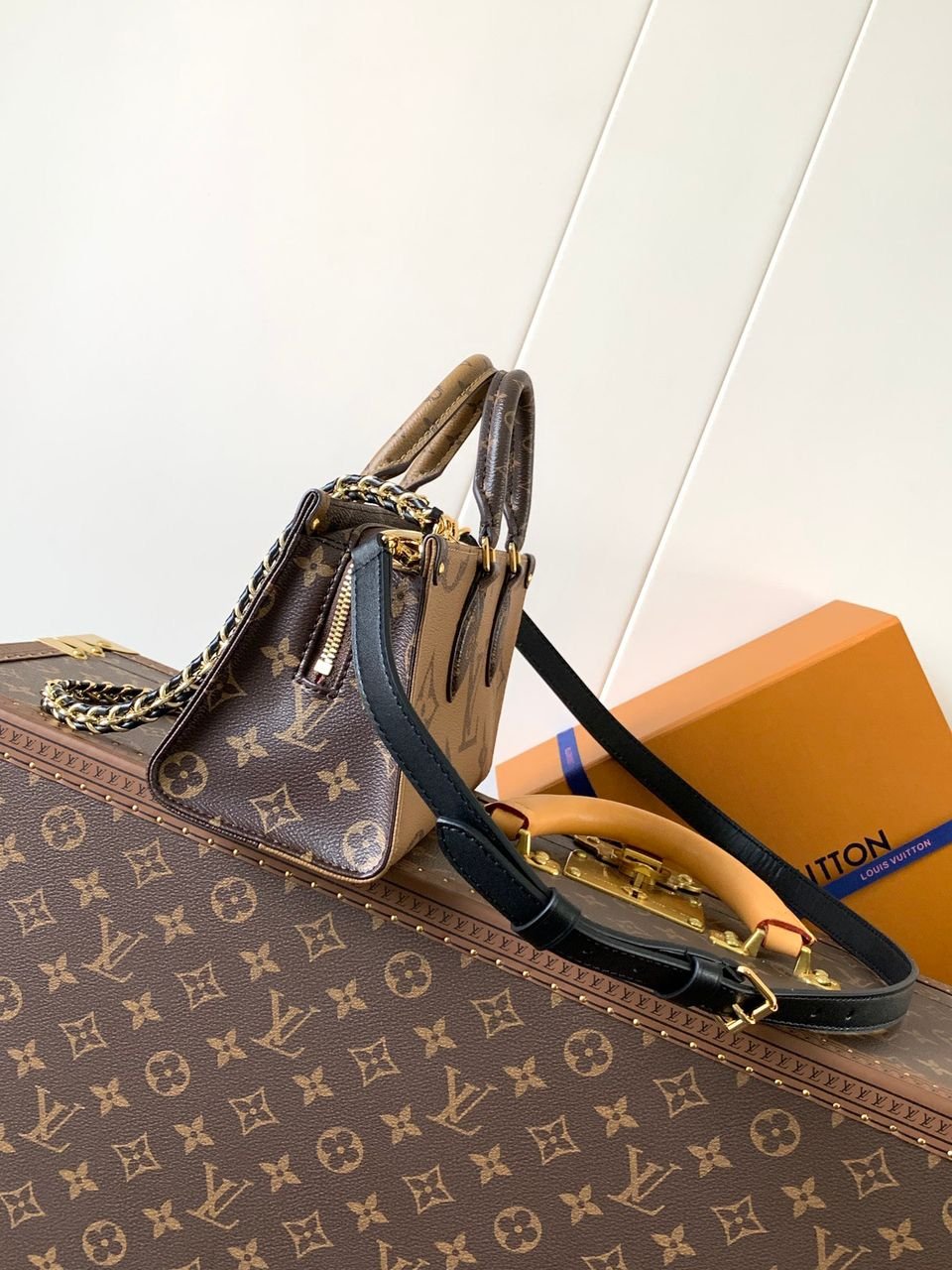 Materiale: Tela Monogram con finiture in vacchetta naturale