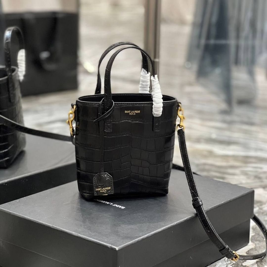 Borsa Saint Laurent Paris in pelle nera effetto coccodrillo 18 cm