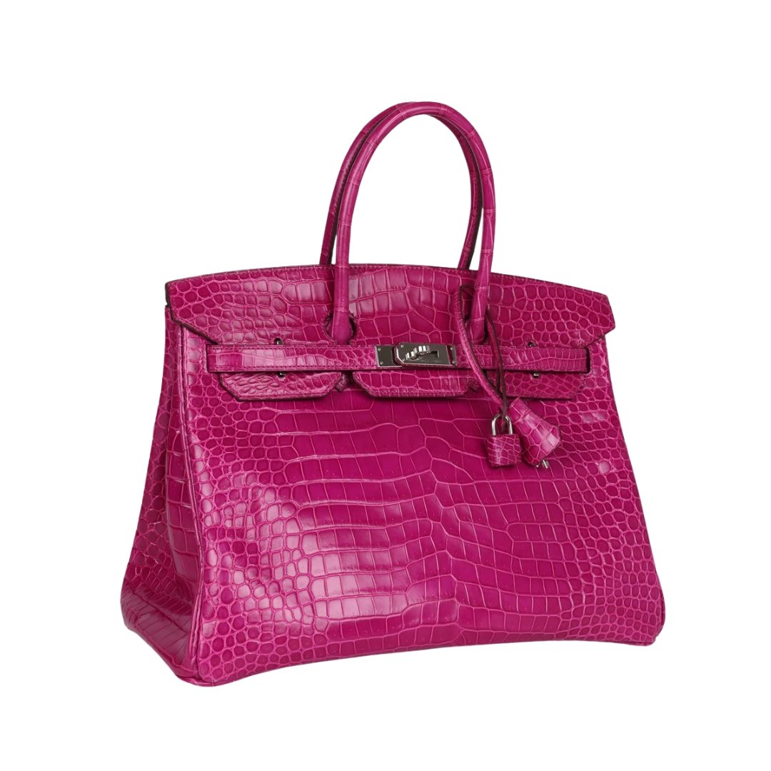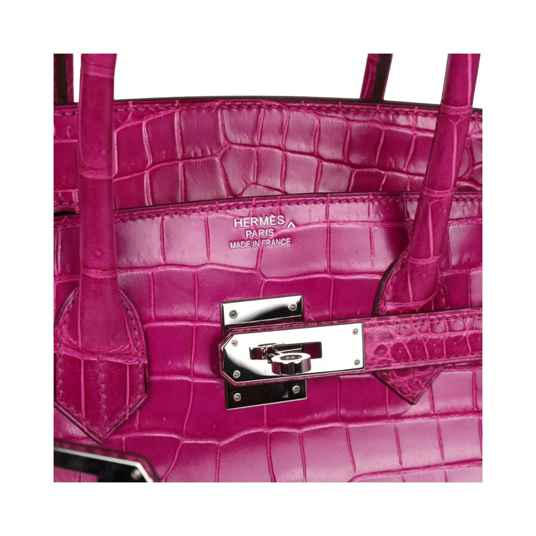 Borsa Hermès Birkin 35 in coccodrillo lucido Porosus Rose Sheherazade