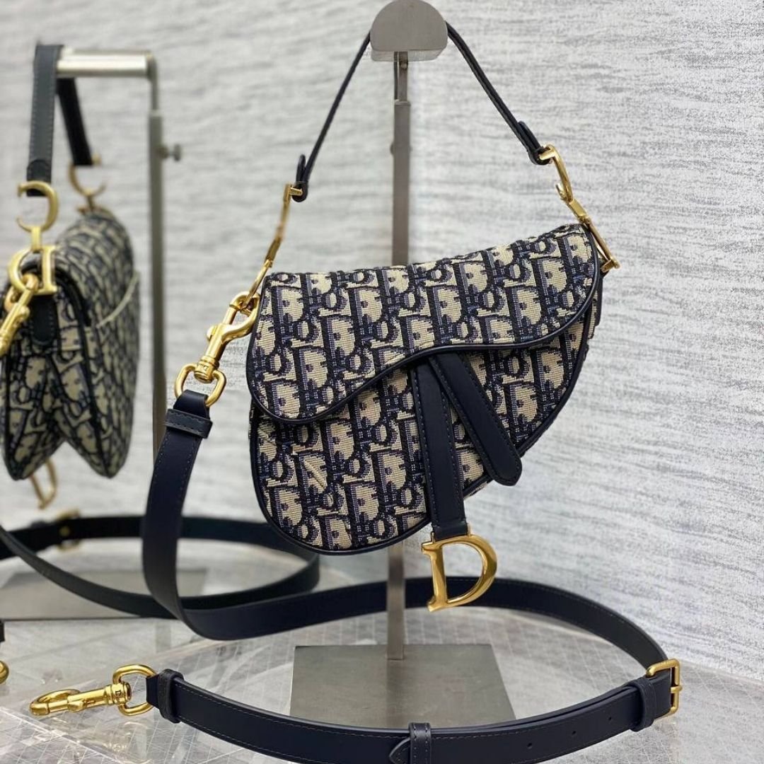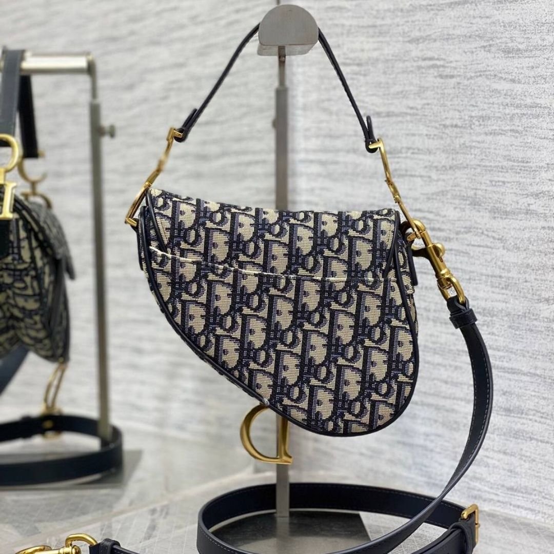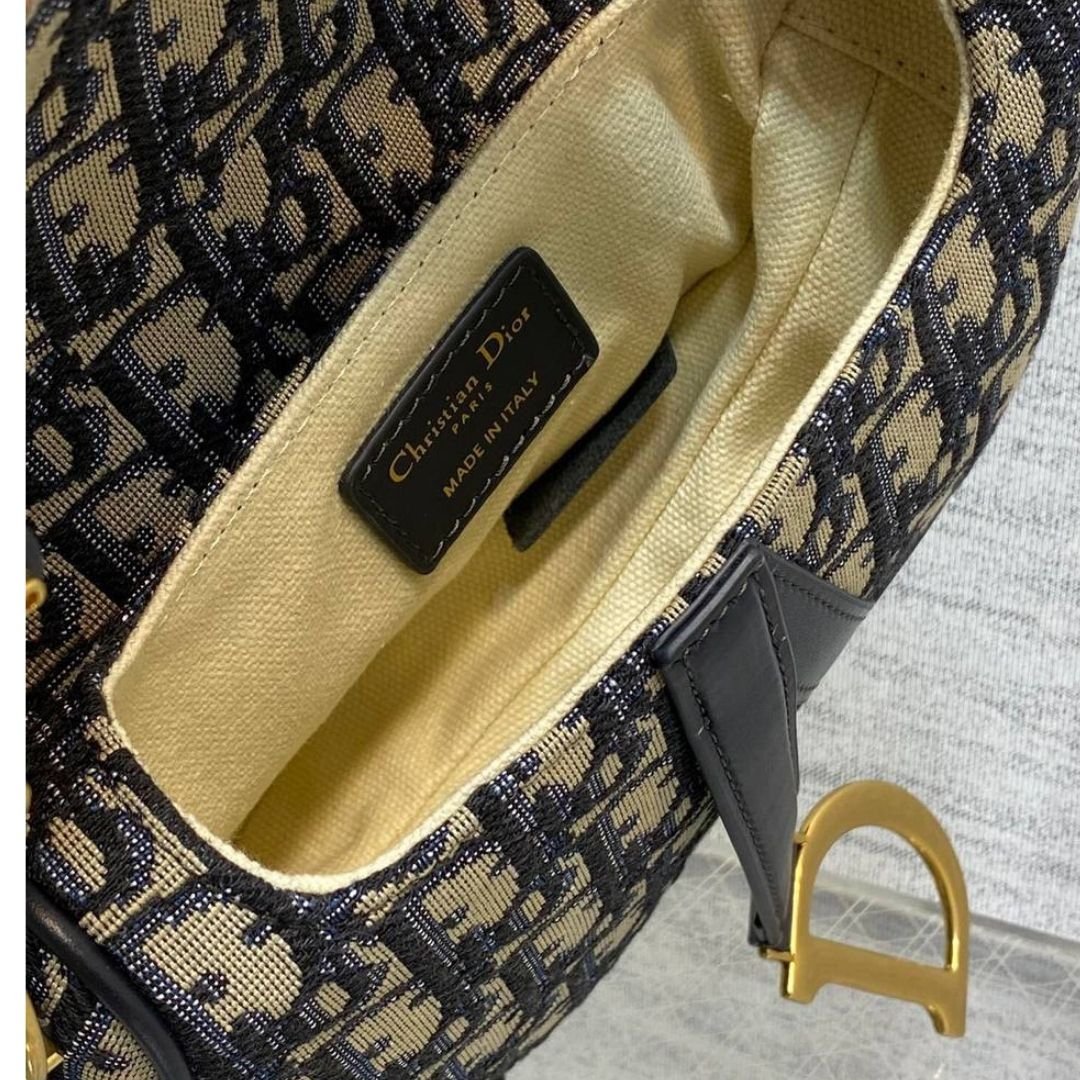 Borsa Dior Saddle in jacquard blu/beige 18 cm