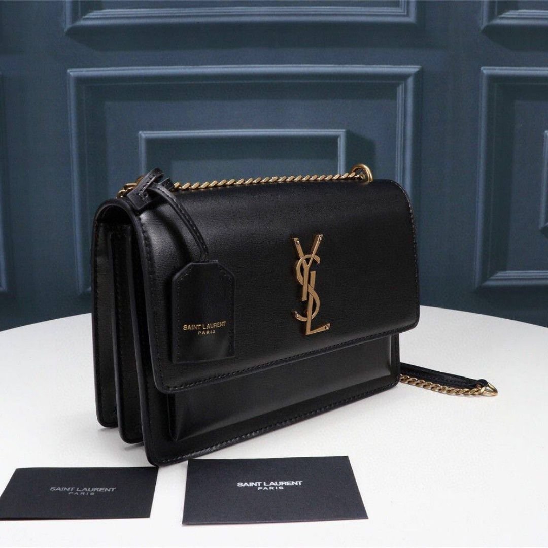 Borsa Saint Laurent Sunset media in pelle nera 22 cm