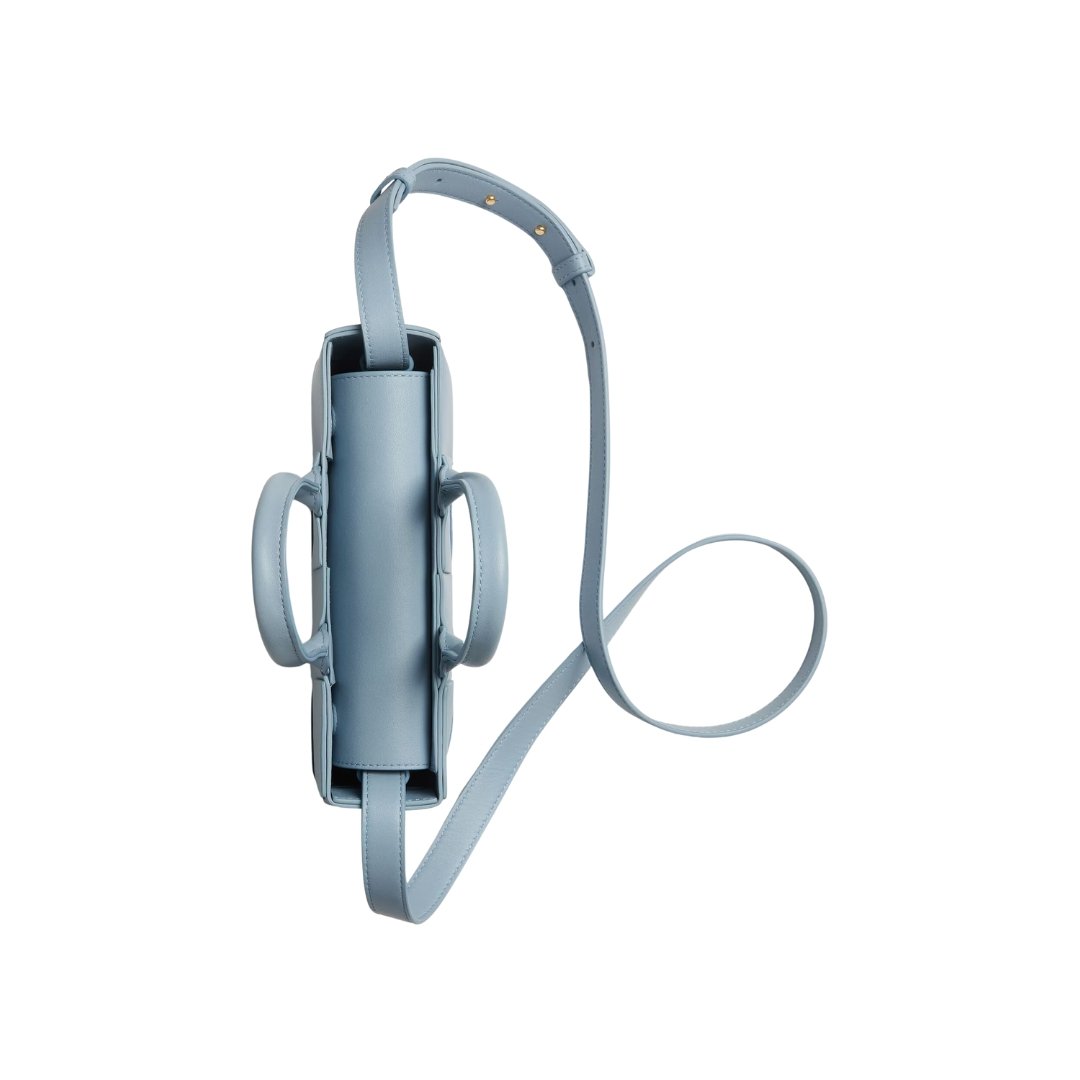 Borsa Bottega Veneta Tote mini silhouette in pelle azzurro ghiaccio 11 cm