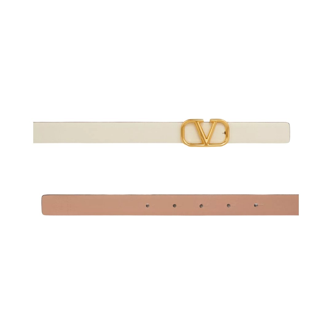 Cintura reversibile Valentino VLogo in pelle rosa cannella 2 cm