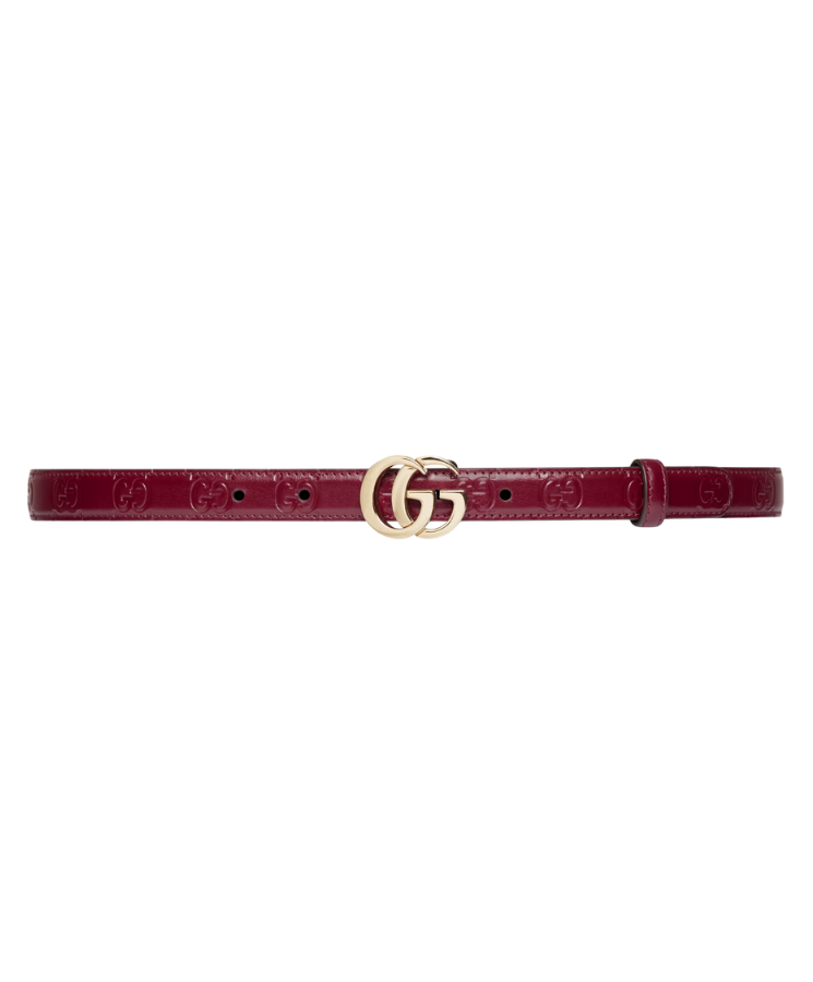 Dettagli:● Materiale: Pelle liscia● Colore: Rosso● Chiusura: Fibbia con logo GG● Logo: GG in metallo dorato● Altezza cintura: 2 cm●