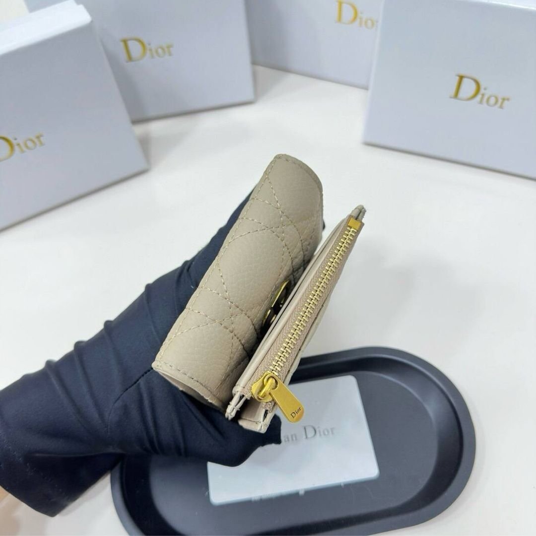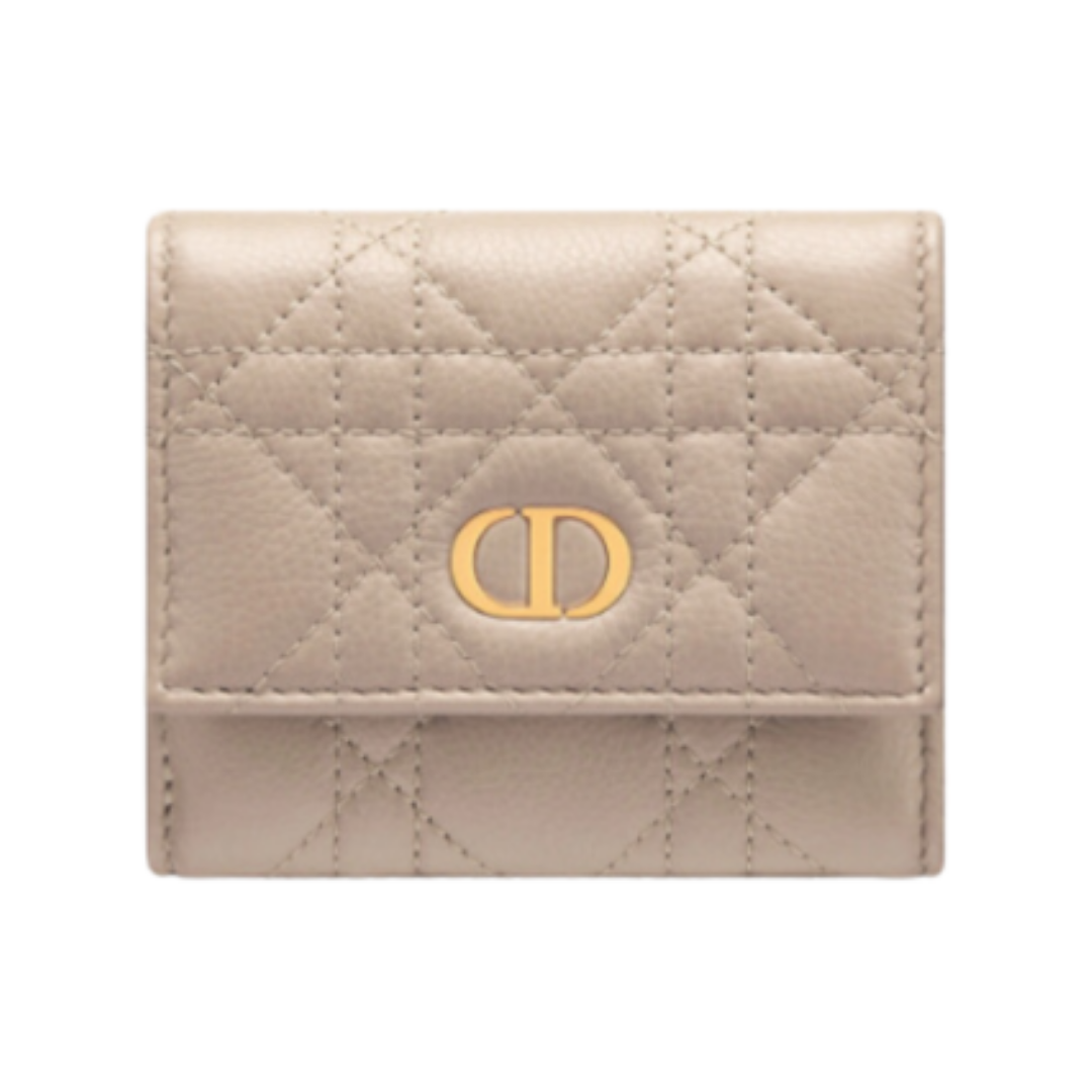 Mini Portafoglio Dior Caro Hibiscus in pelle beige 10 cm