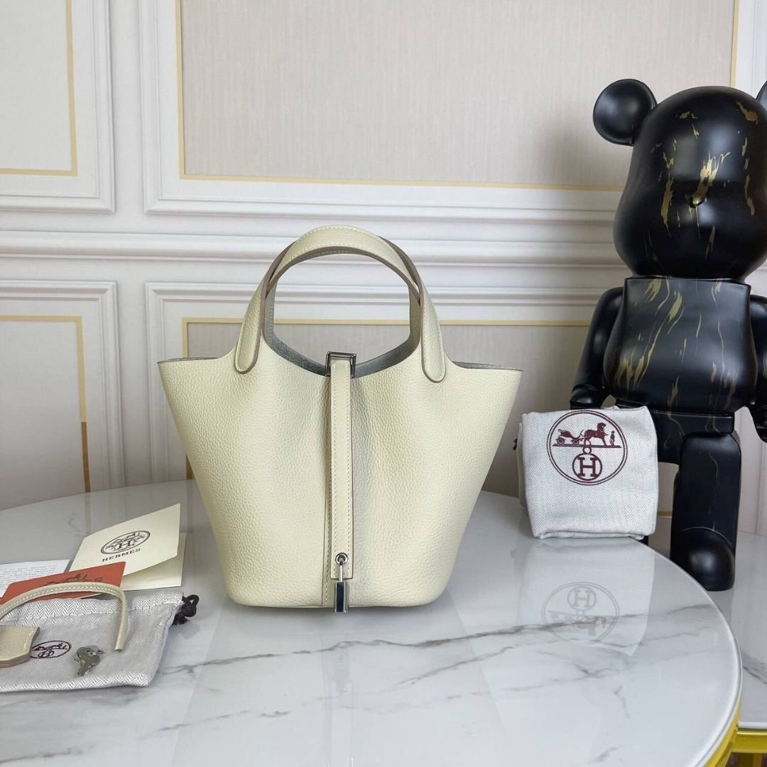 Borsa Hermès Picotin Lock 18 in pelle Togo color crema