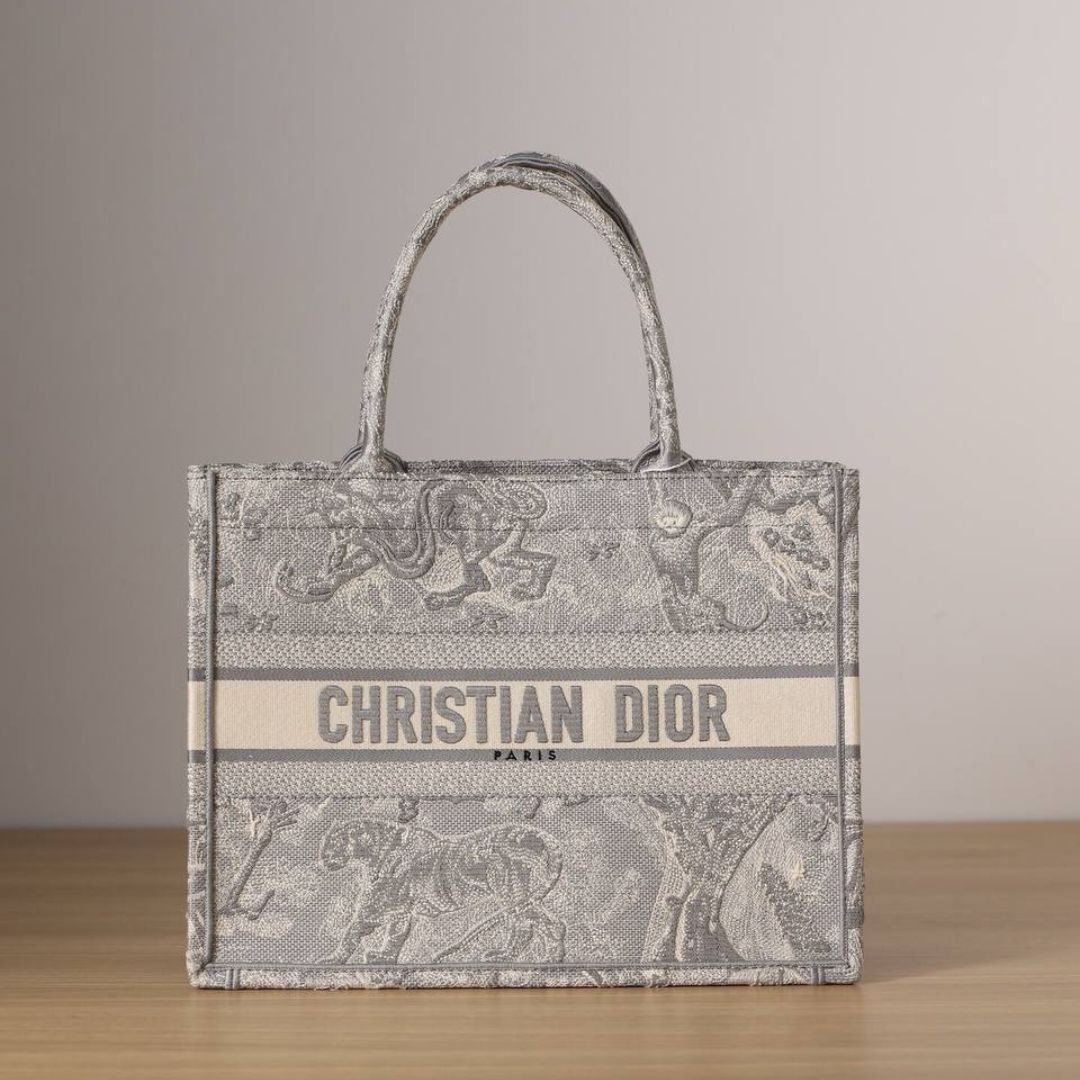Borsa Dior Book Tote media ricamo Toile De Jouy grigio 36 cm