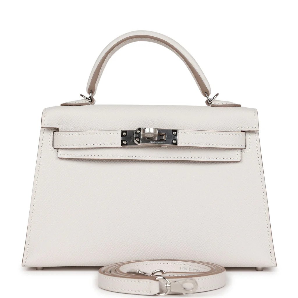 Borsa Hermès Kelly 20 in pelle Epsom bianca