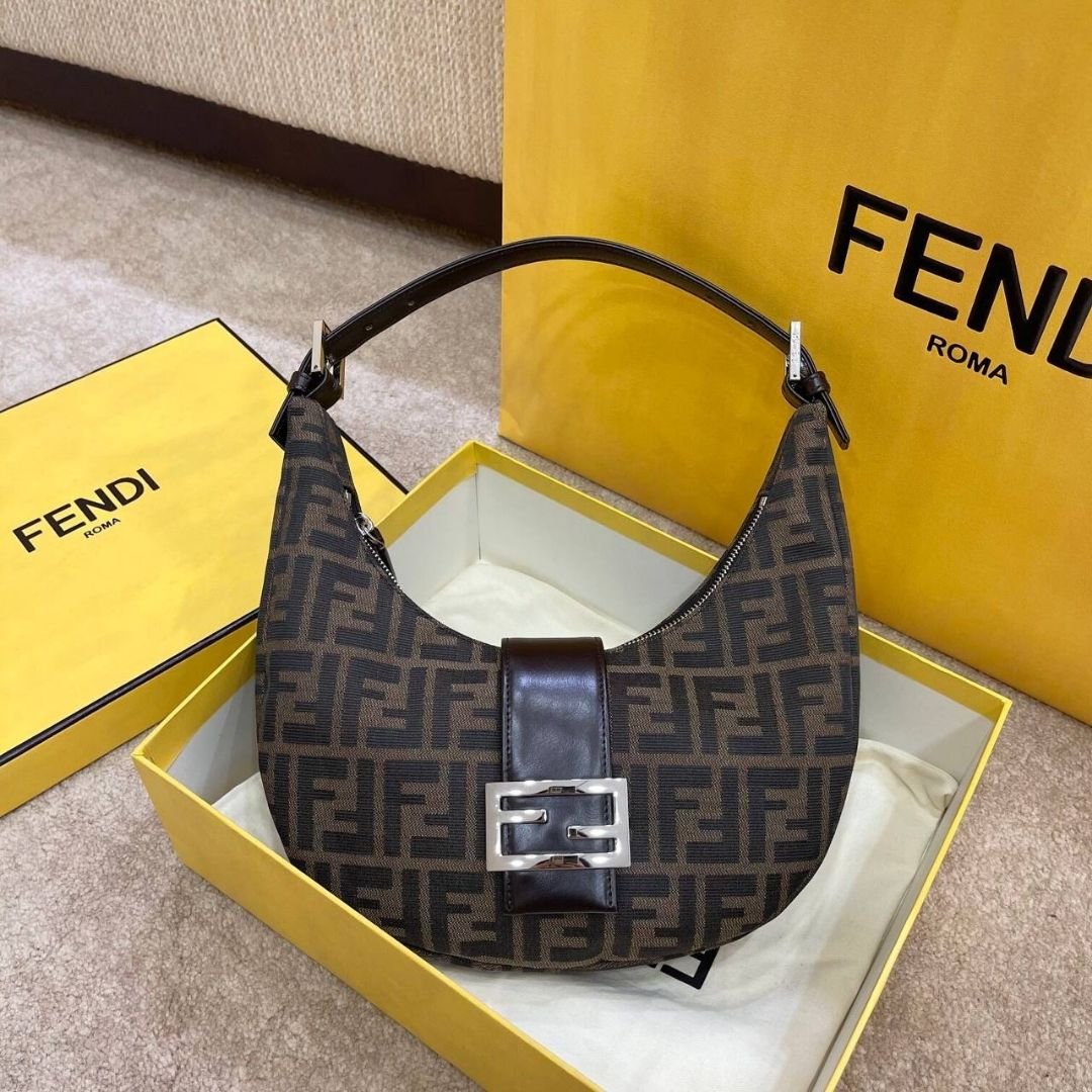 Dimensioni:● Larghezza: 26 cm● Altezza: 22 cm● Profondità: 10 cm Dettagli:● Materiale: Tessuto FF jacquard e pelle● Colore: Caffè● Chiusura: