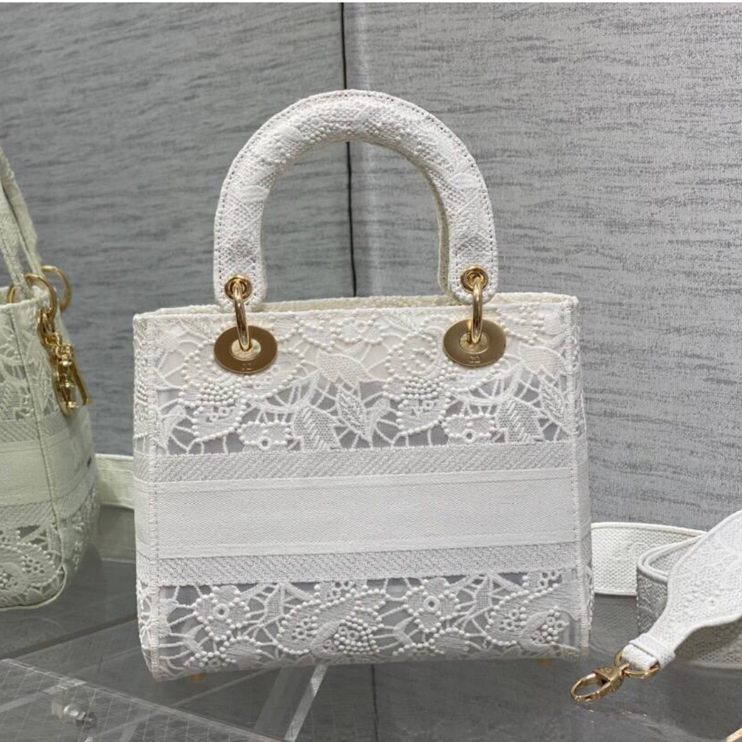 Borsa Dior Lady D-Lite in ricamo bianco 24 cm