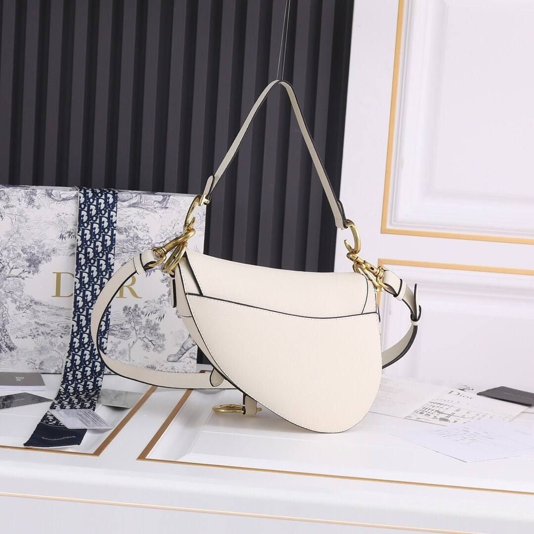 Borsa Dior Mini Saddle in pelle bianca 19,5 cm