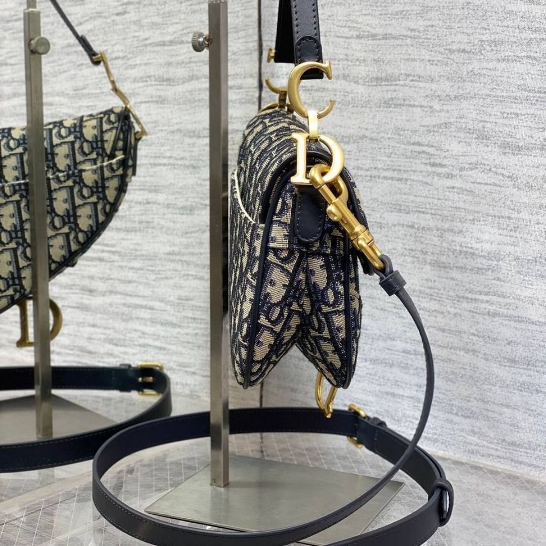 Borsa Dior Saddle in jacquard blu/beige 18 cm